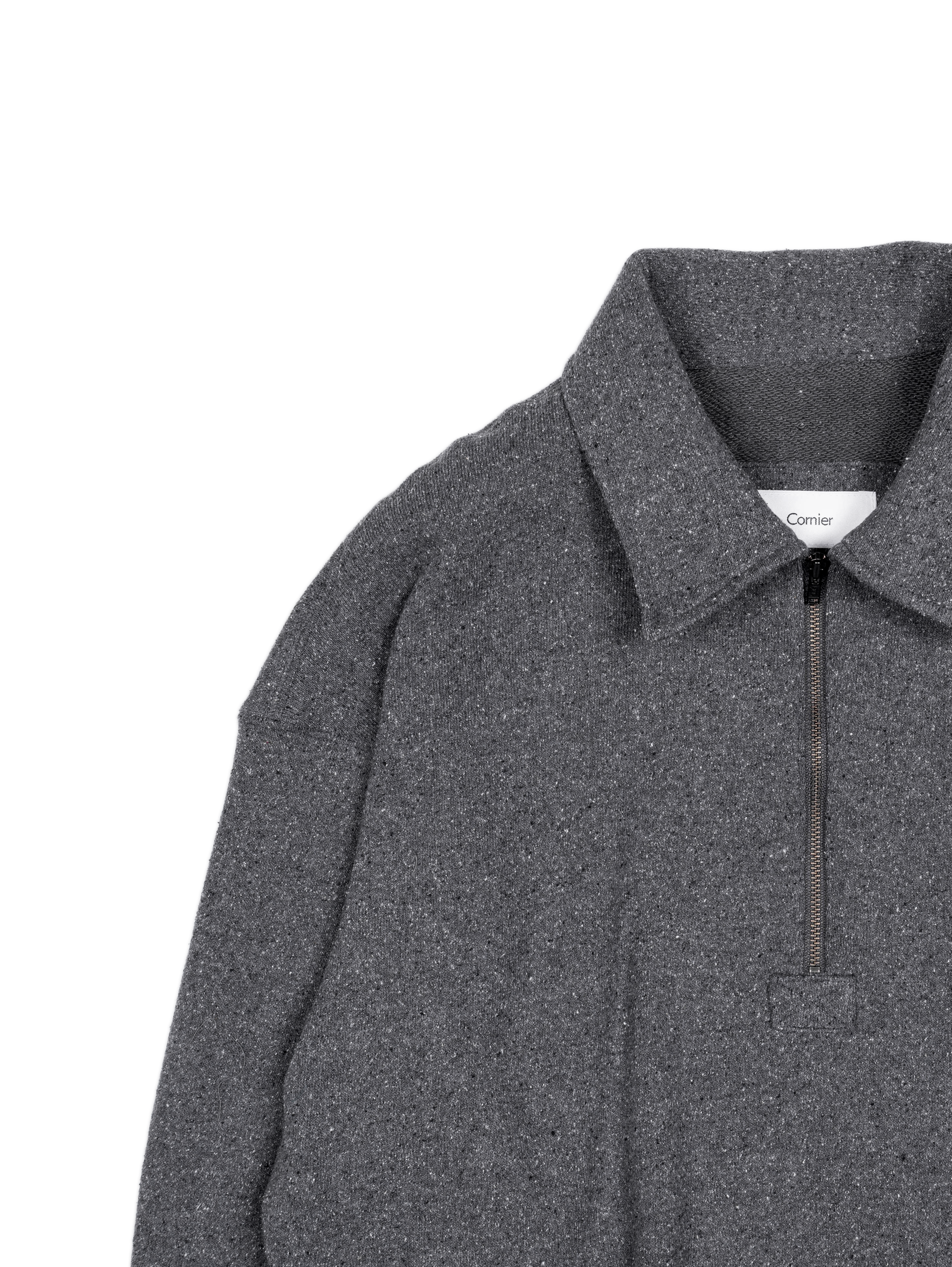 SILK/COTTON LOOPBACK FLEECE HALF ZIP SHIRTS|TOP GRAY