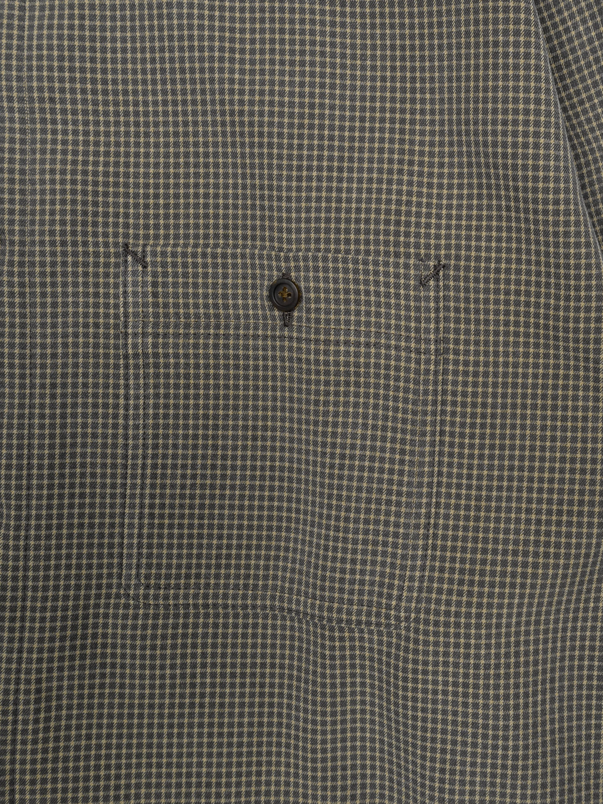 Silk check shirt made of 2/2 twill gabardine material using silk spun yarn.