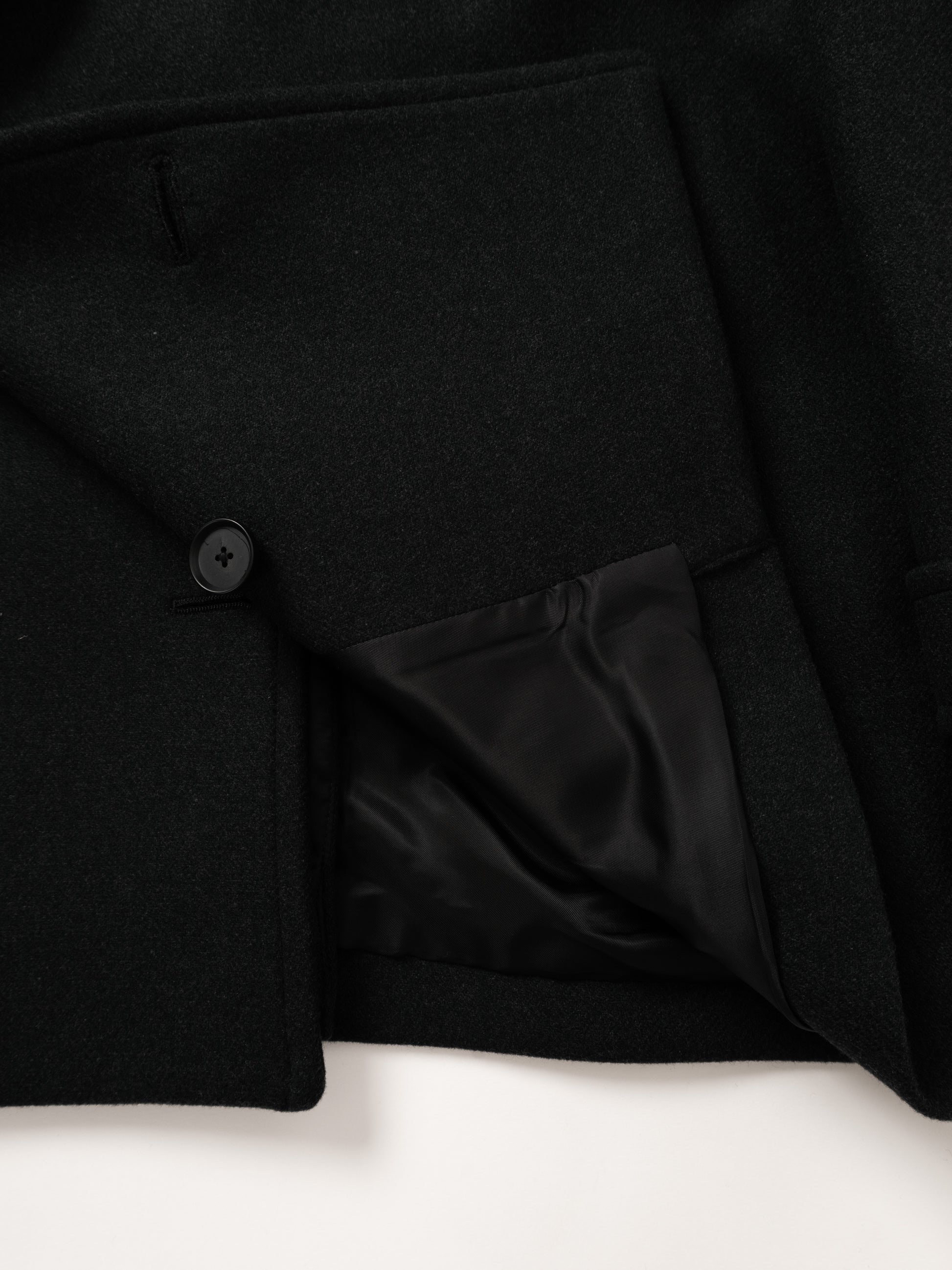 Super160's Wool Double Cloth Pea Coat|Top Black