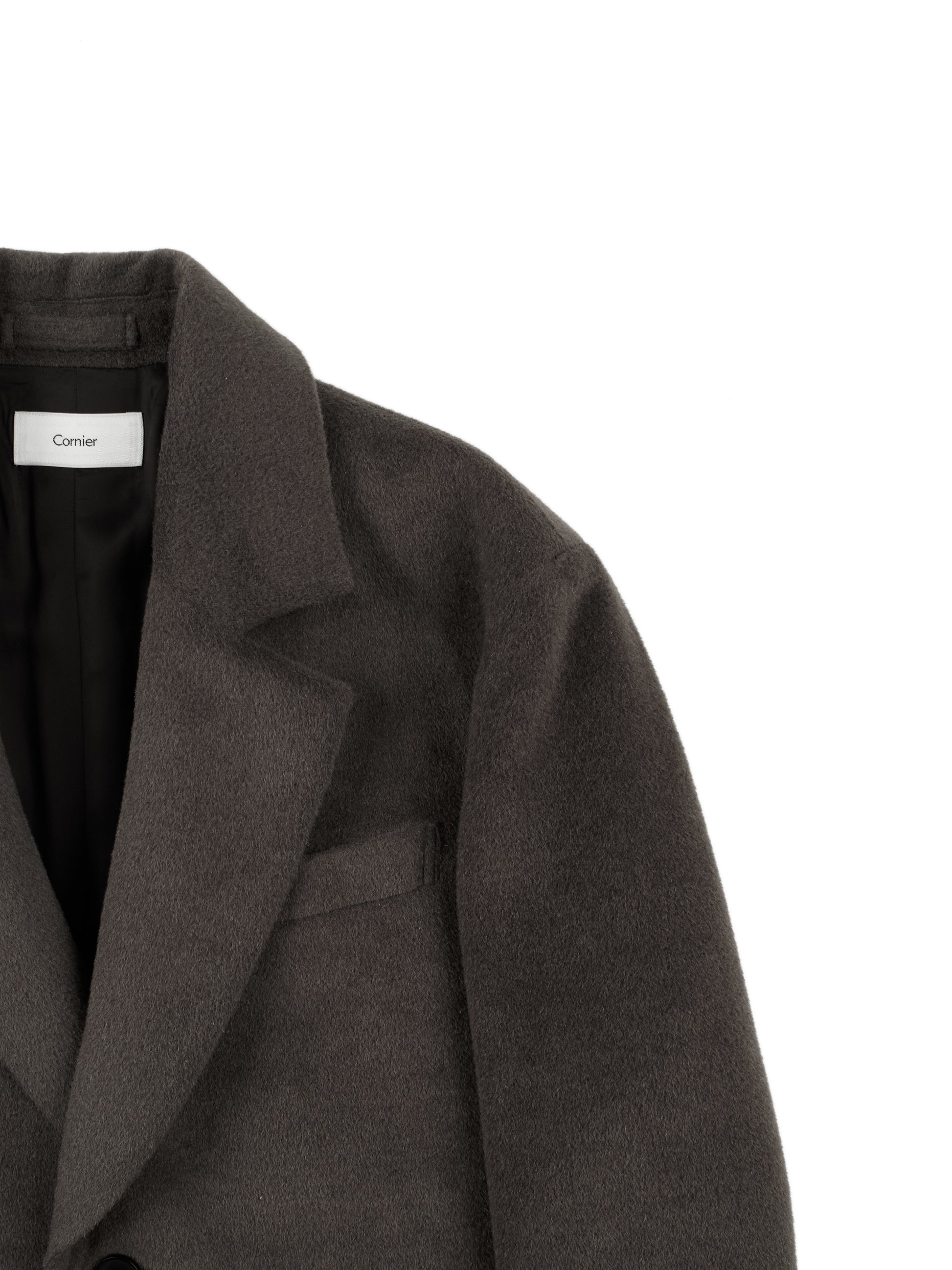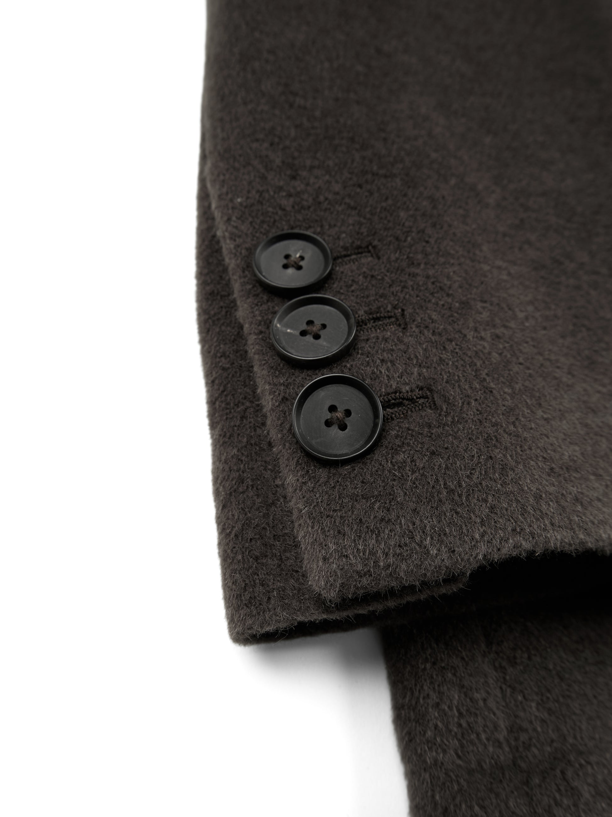 Using Super100's rank wool worsted yarn for the warp, and a twisted yarn of Thuri alpaca and silk for the weft, it is woven with a special horizontal floating weave and finished with a beaver finish.