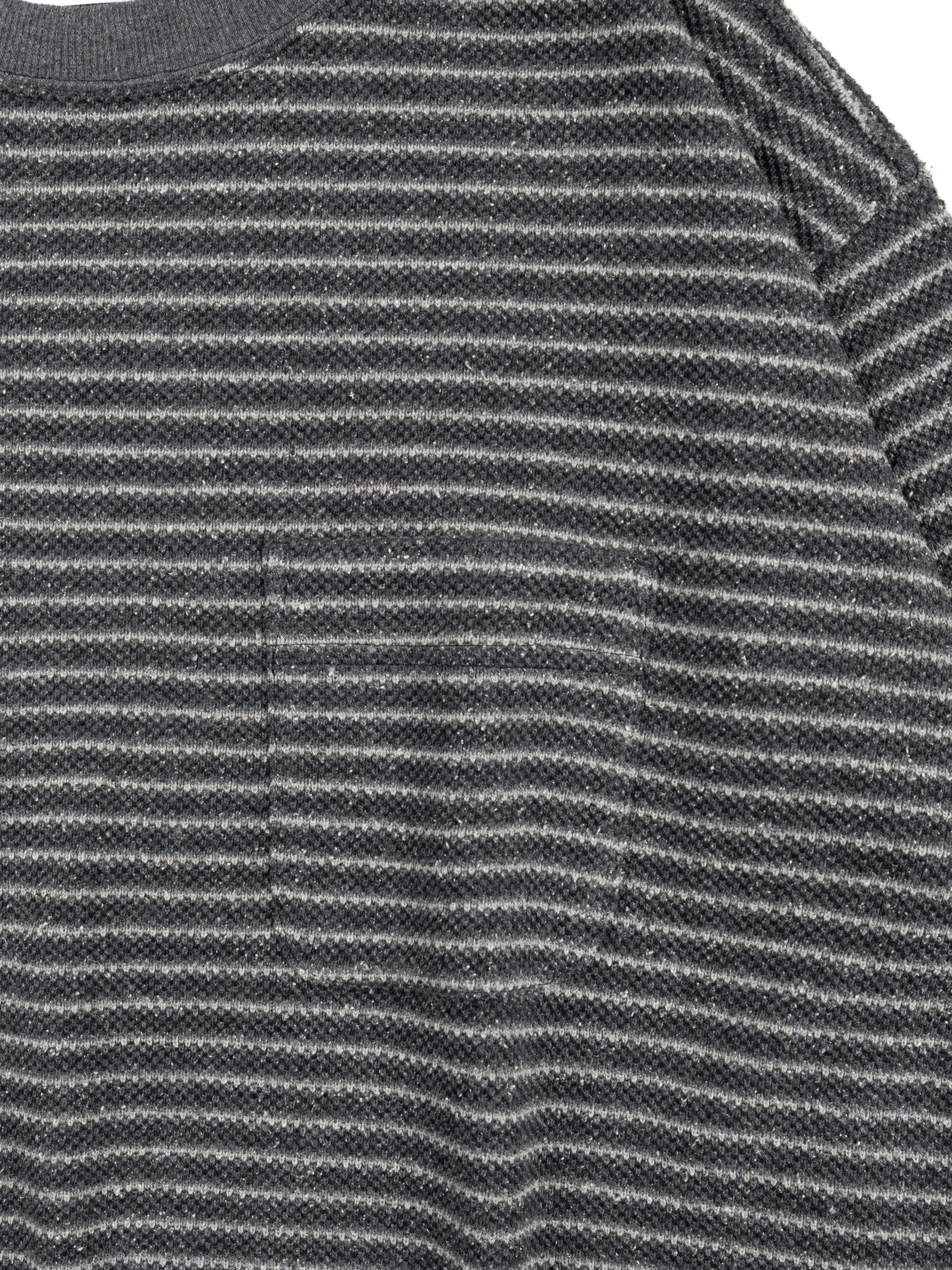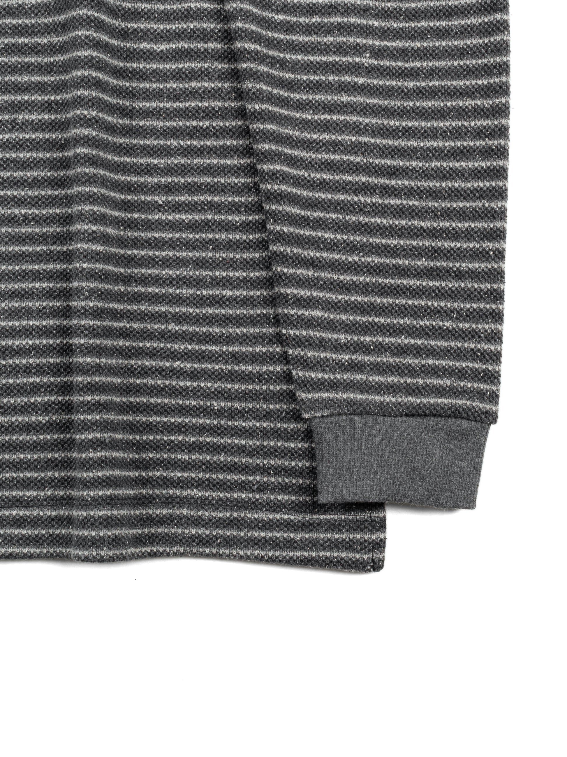 SILK NEP HEAVY MOSS STITCH BORDER LONG SLEEVE T-SHIRTS|GRAY