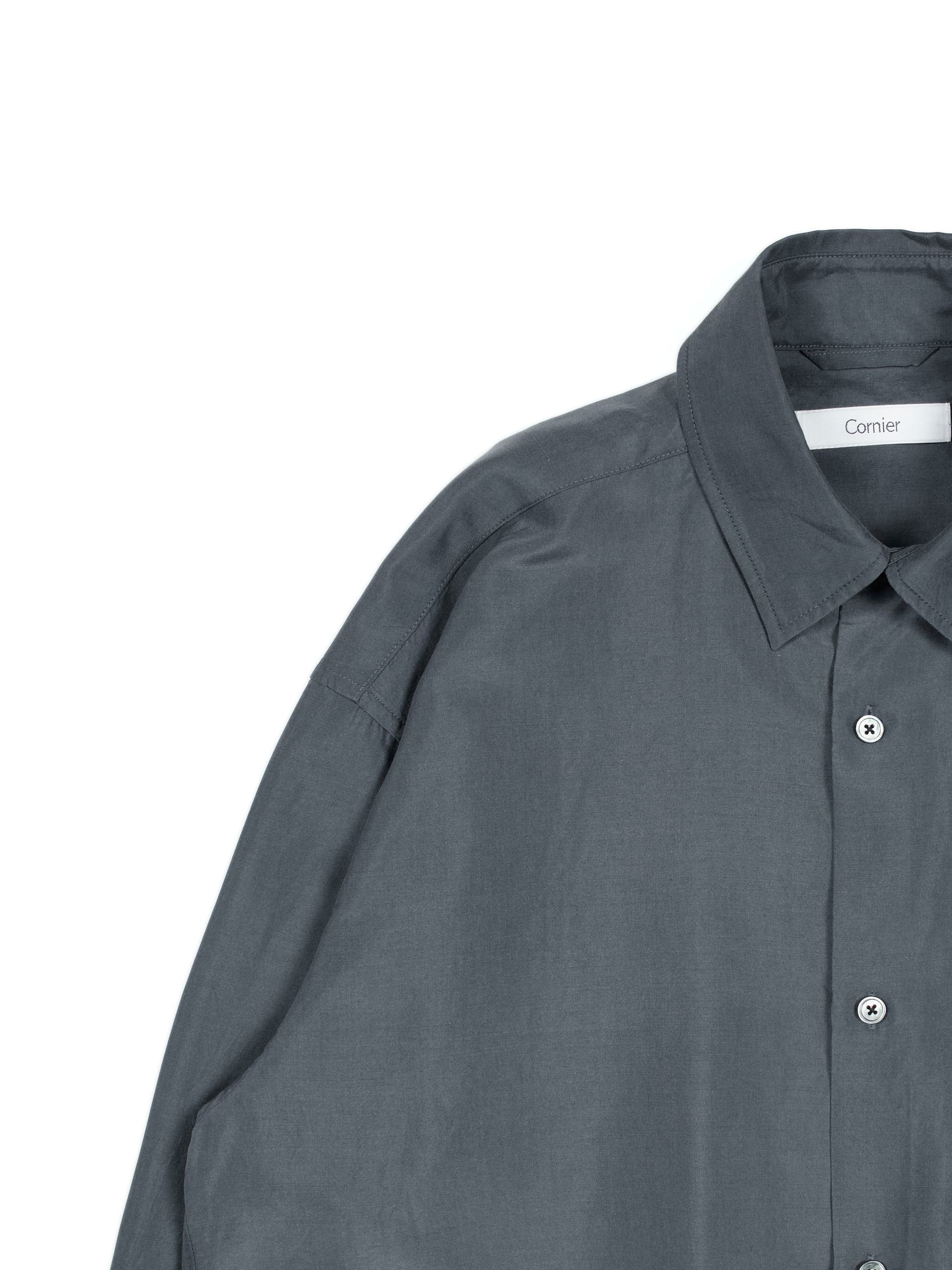 シルク羽二重素材を使用したレギュラーカラーシャツ。