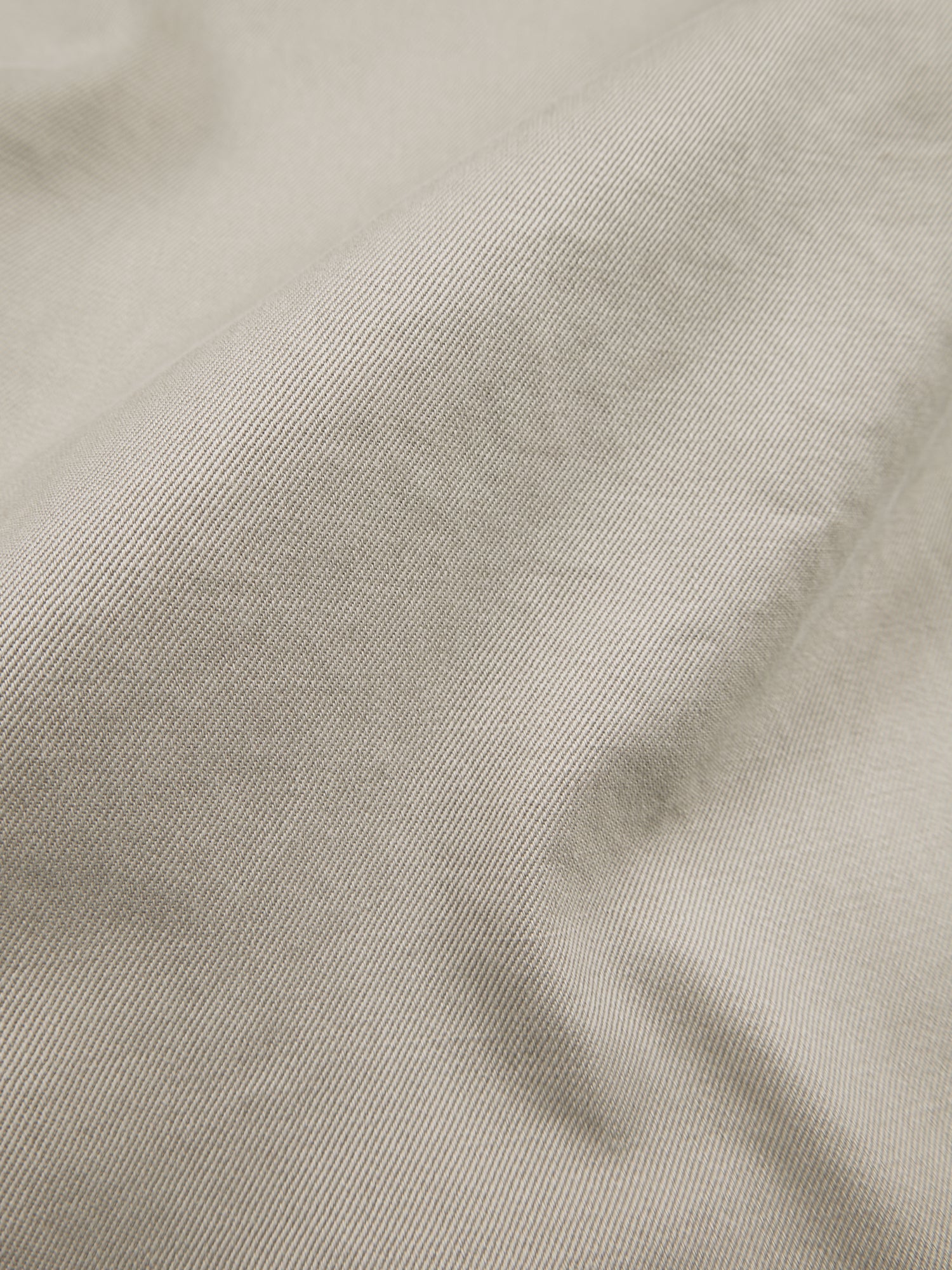 경사실에는 핀크스 코튼 3합 꼬임 실을, 위사실에는 짐바브웨 코튼의 무라 실을 세워 한계까지 고밀도로 제직한 치노 크로스를 사용하고 있습니다.