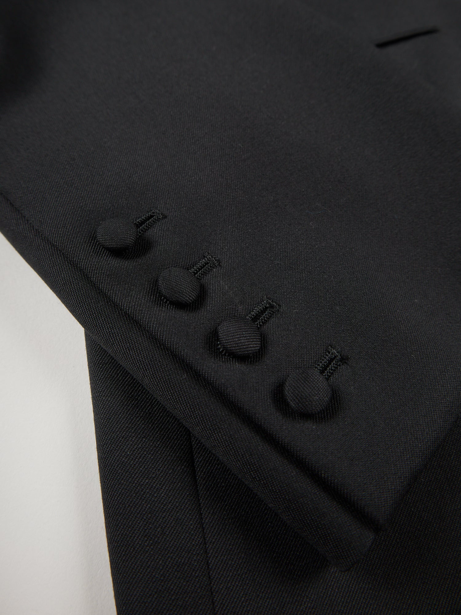 극세 울 빗질사로 만든 고밀도 울 개버딘 소재의 테일러드 재킷입니다.