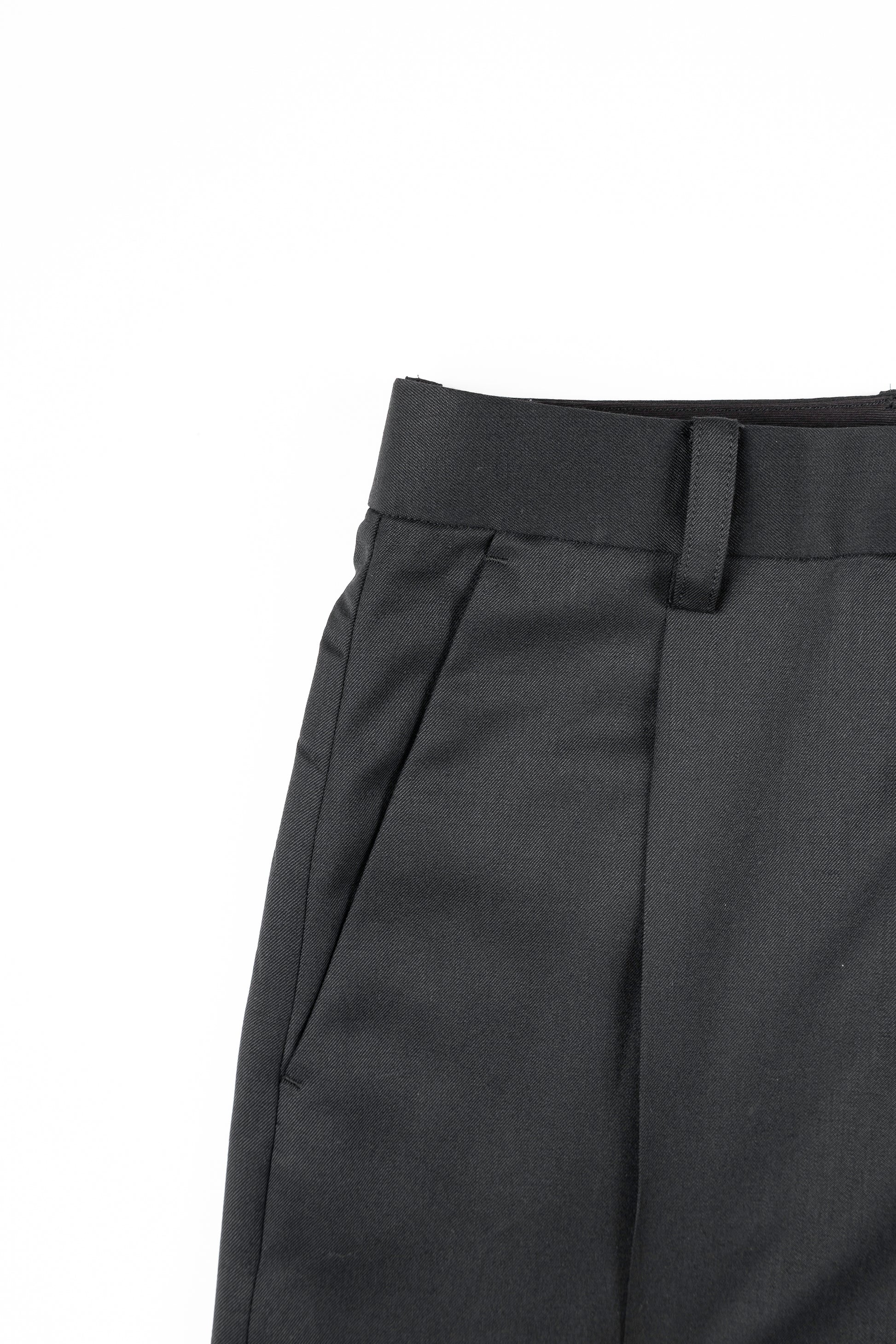 극세 울 빗질사로 만든 고밀도 울 개버딘 소재의 와이드 슬랙스입니다.