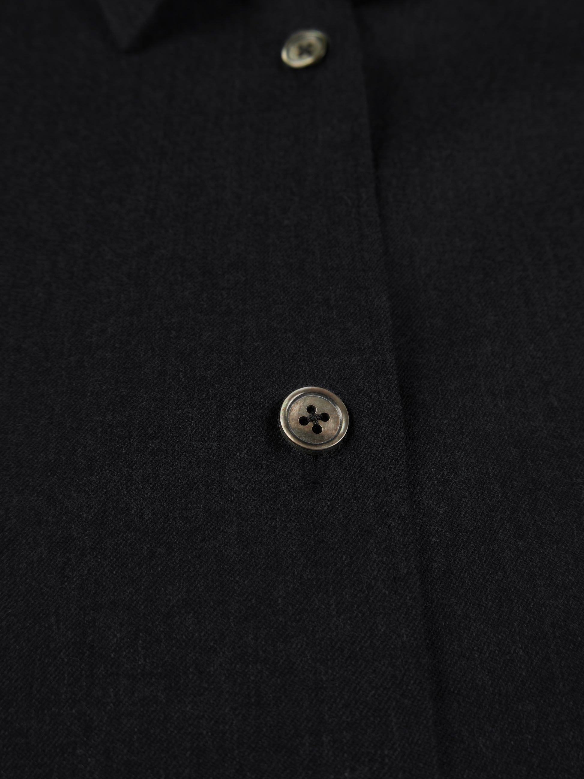 Super130's WORSTED WOOL LIGHT MILLED SHIRTS DRESS|TOP BLACK