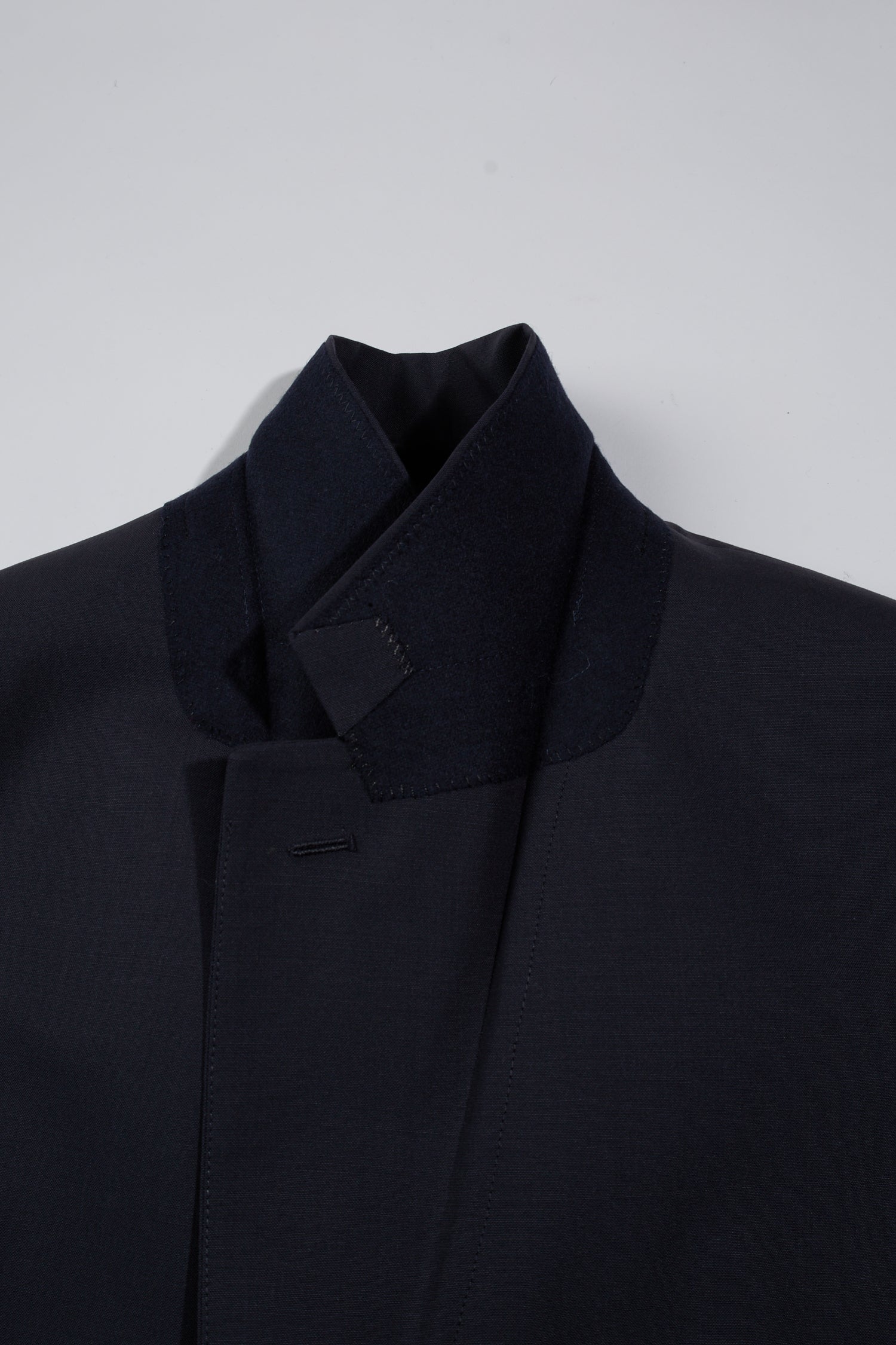 경사실에는 뉴질랜드산 Super160's 울을, 위사실에는 키드 모헤어 혼방 울사를 사용한 트로피컬 소재의 테일러드 재킷입니다.