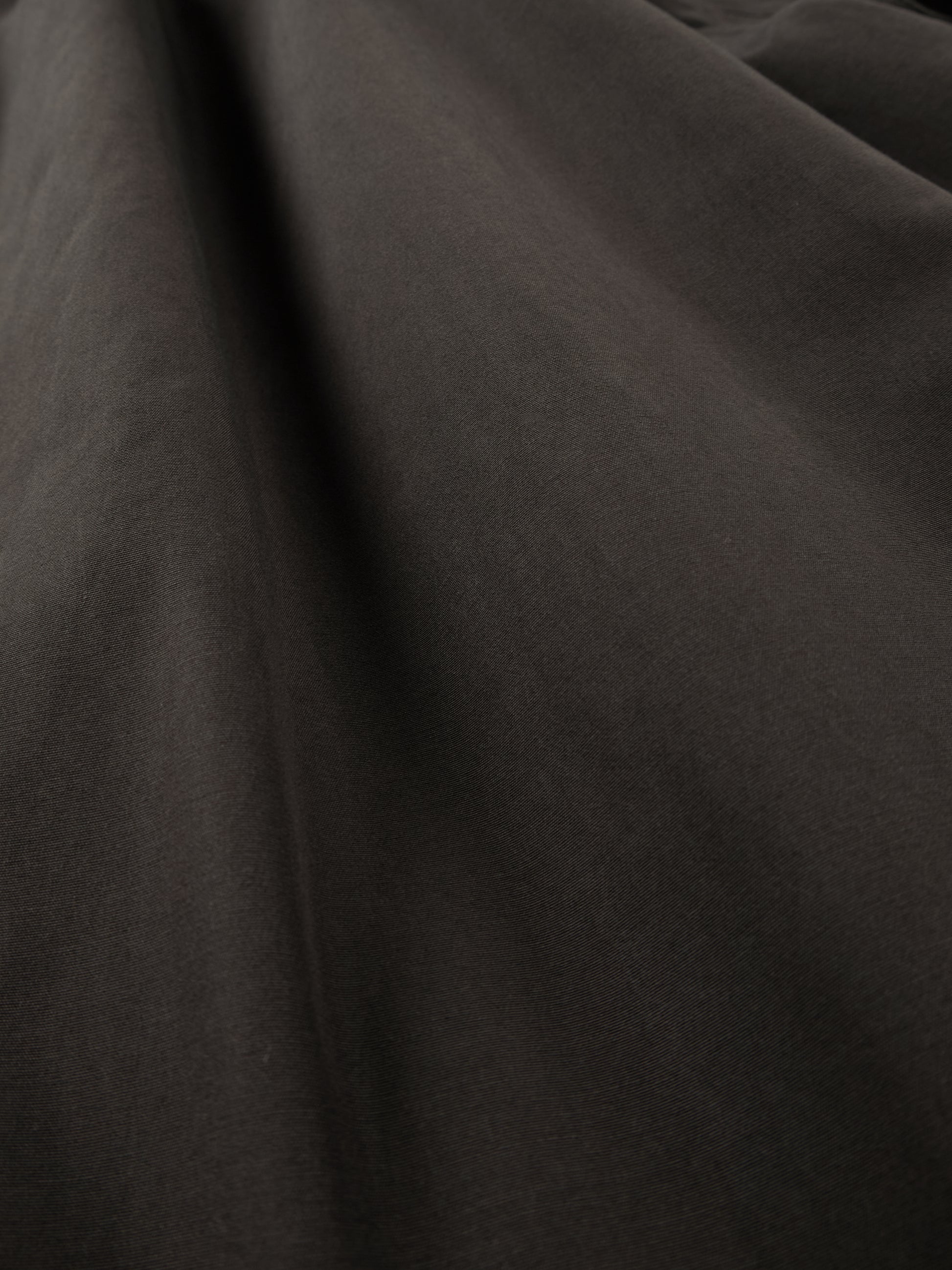 ブラジル産シルク生糸とコットンを旧式シャトル織機で高密度に織り上げた贅沢なシルクコットン素材を表地に使用しています。