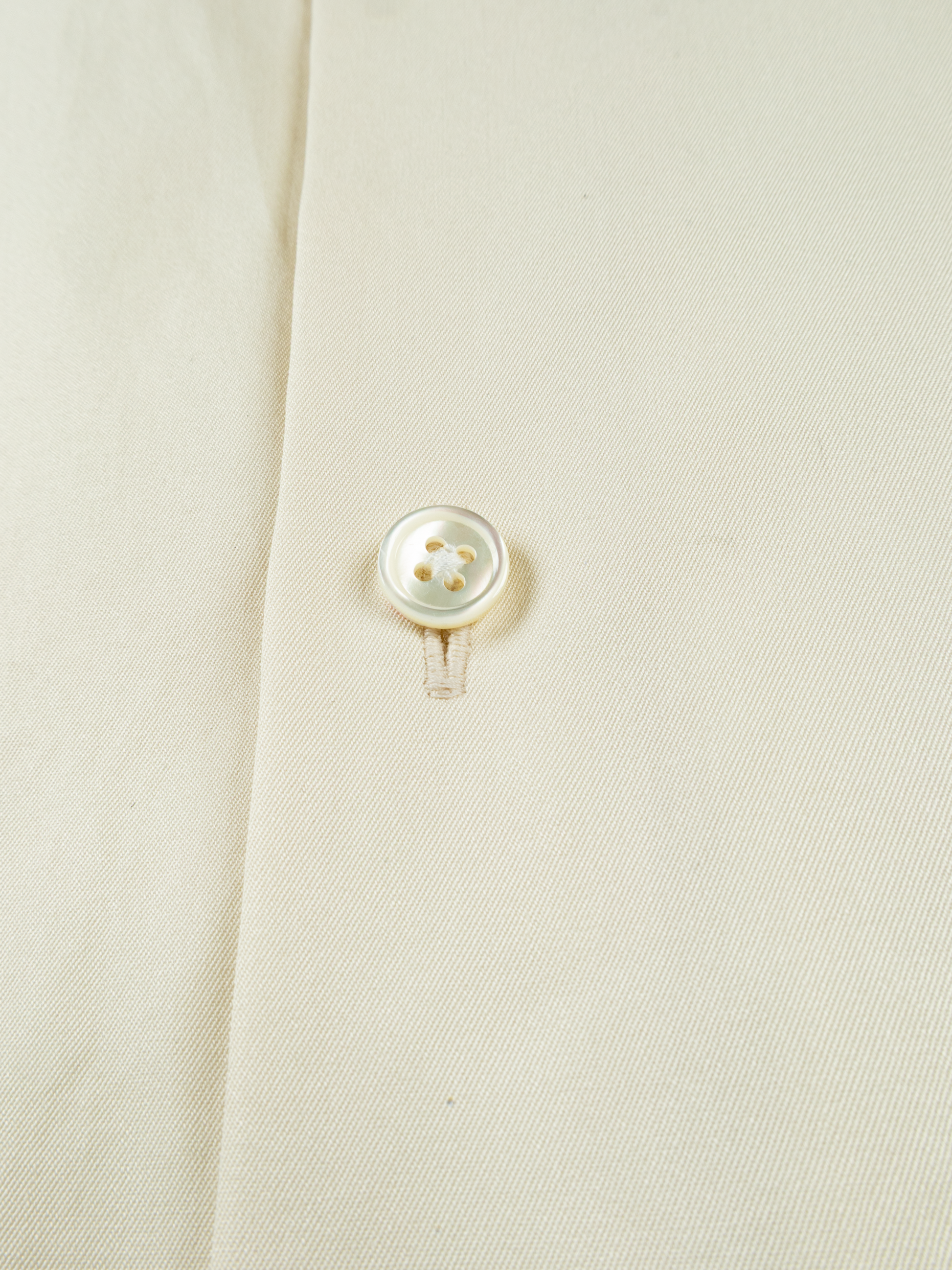 フィンクスコットン原料を使用した高密度ツイル素材のバンドカラーシャツ。