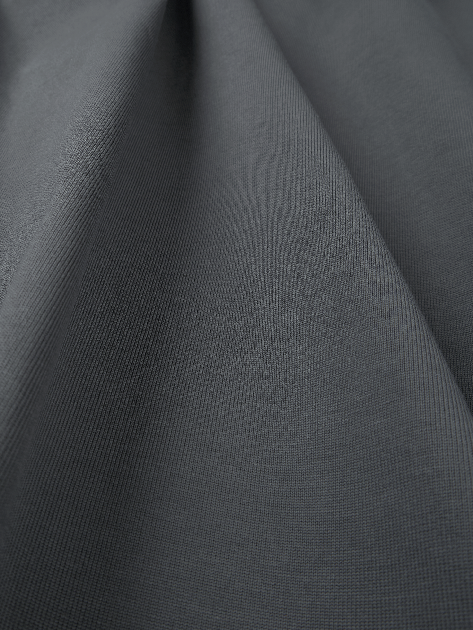 GIZA94三子撚り糸を2本引き揃え限界まで度詰に編み立てることで、贅沢なヘビーウエイトの天竺素材に仕上げました。