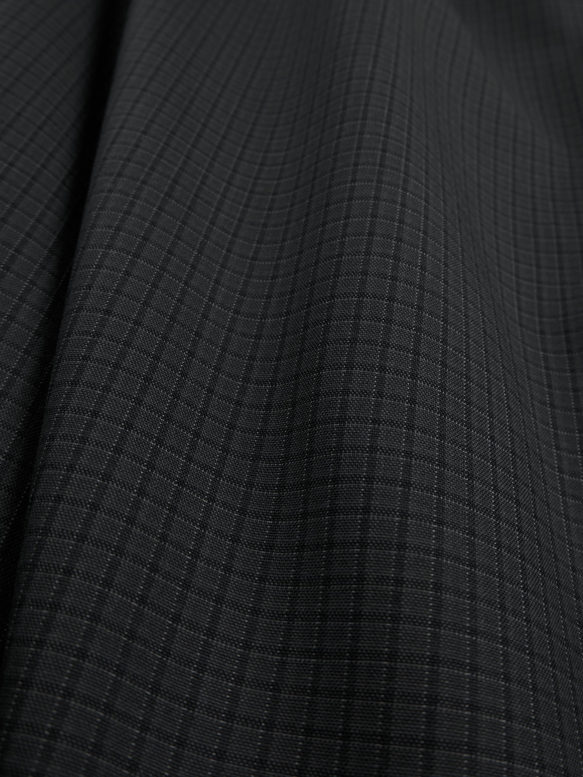 S160'sランクのニュージーランド産梳毛ウールと絹紡シルクを使用し、経緯に異なる濃度の色を組み合わせて絶妙な大きさのチェック柄に落とし込んでいます。
