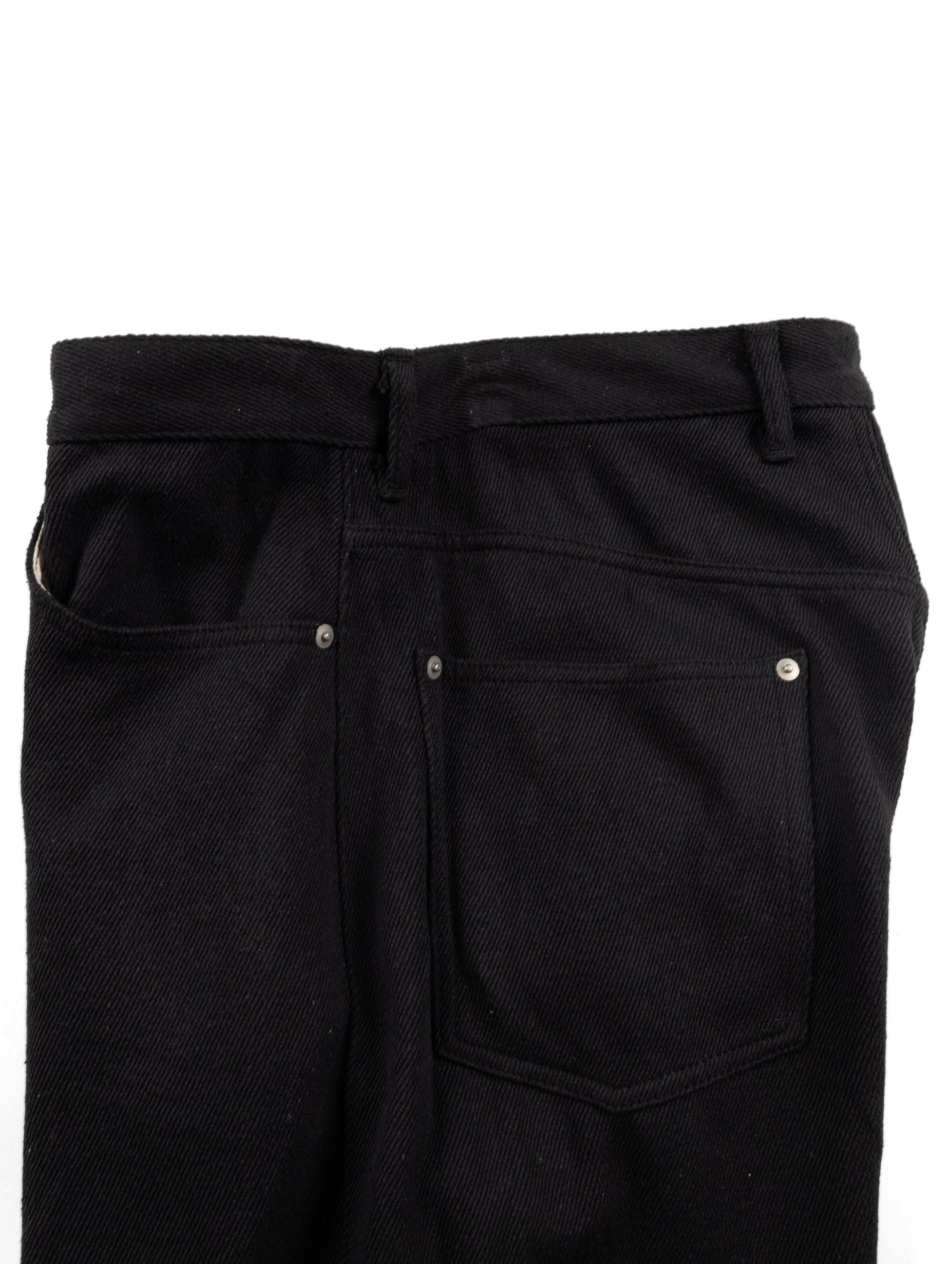 シルク紬糸特有の素朴な表情が魅力的なシルクネップデニムパンツ。