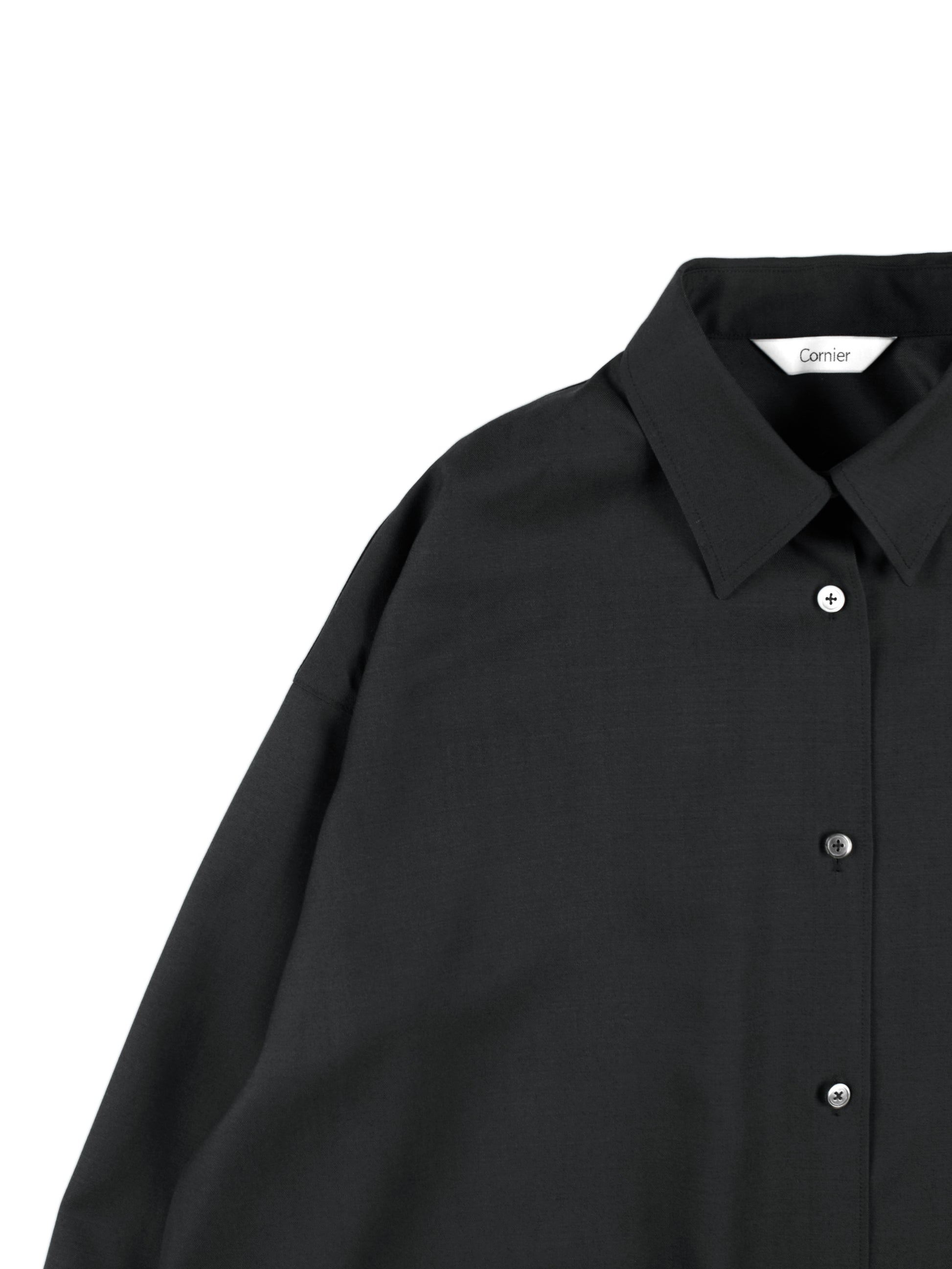 Super130's WOOL CHAMBRAY GABARDINE SHIRTS DRESS|BLUE CHARCOAL