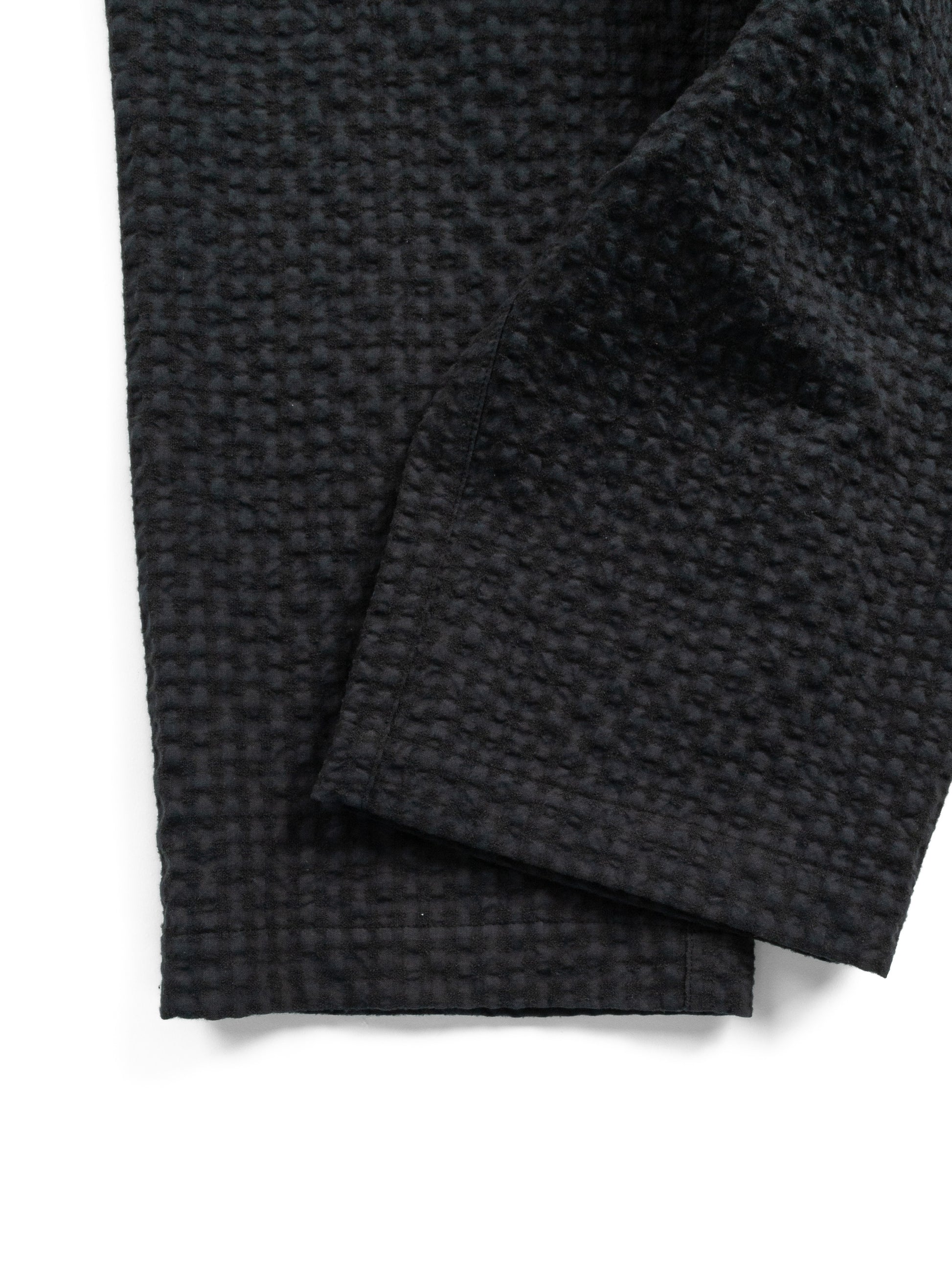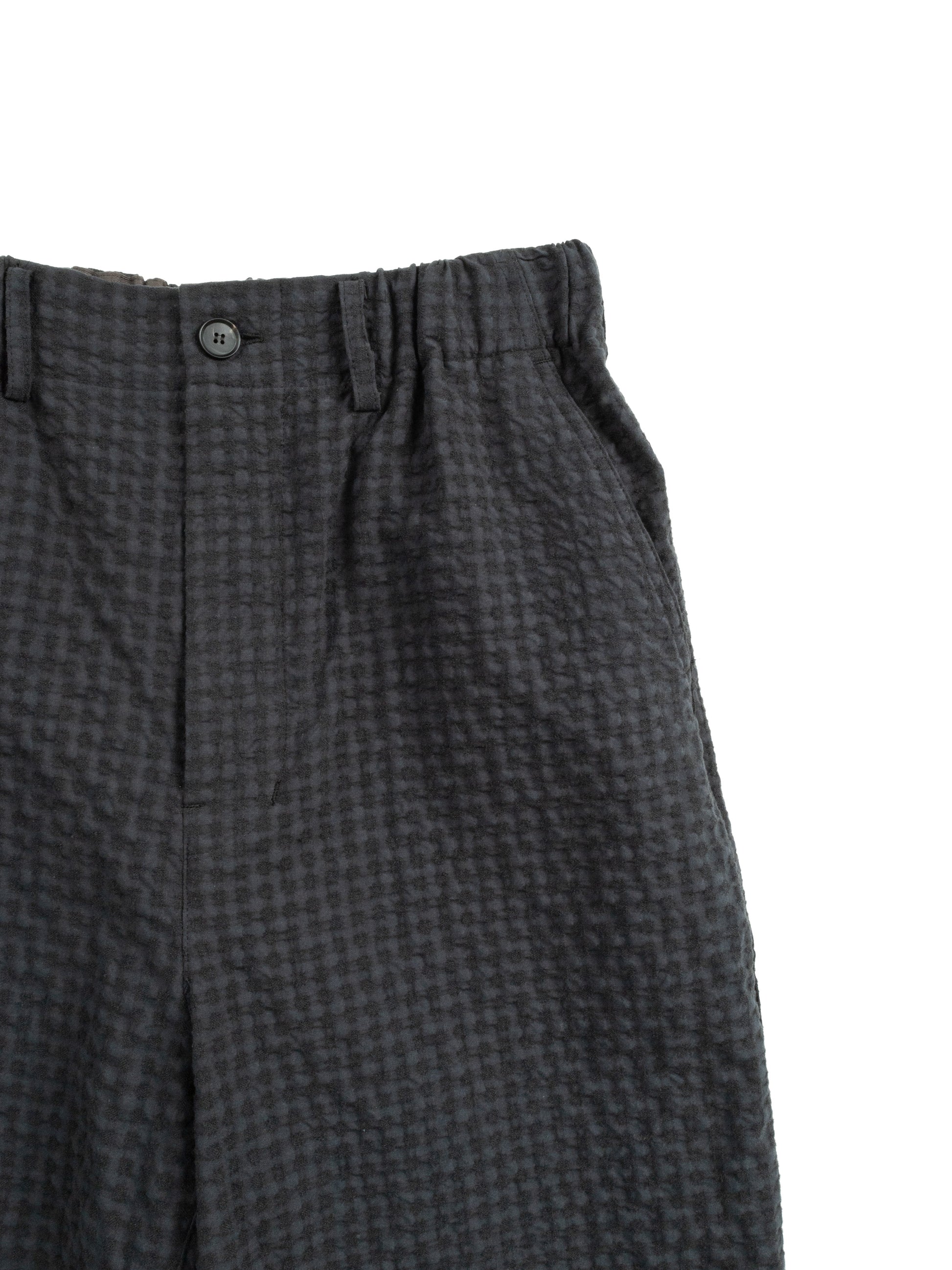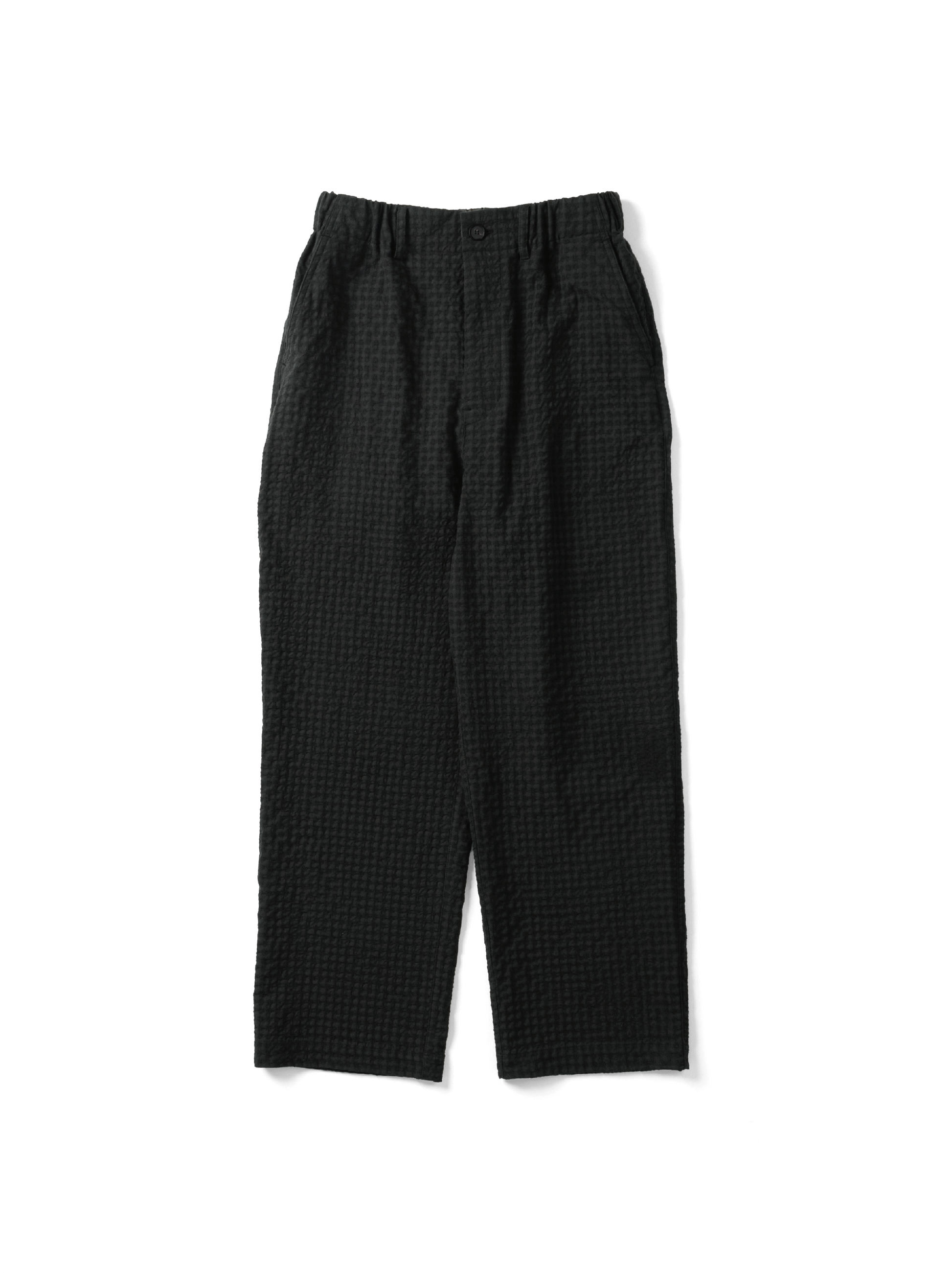 特殊織組織による立体的な凹凸が特徴的なウールコットンのイージーパンツ。
