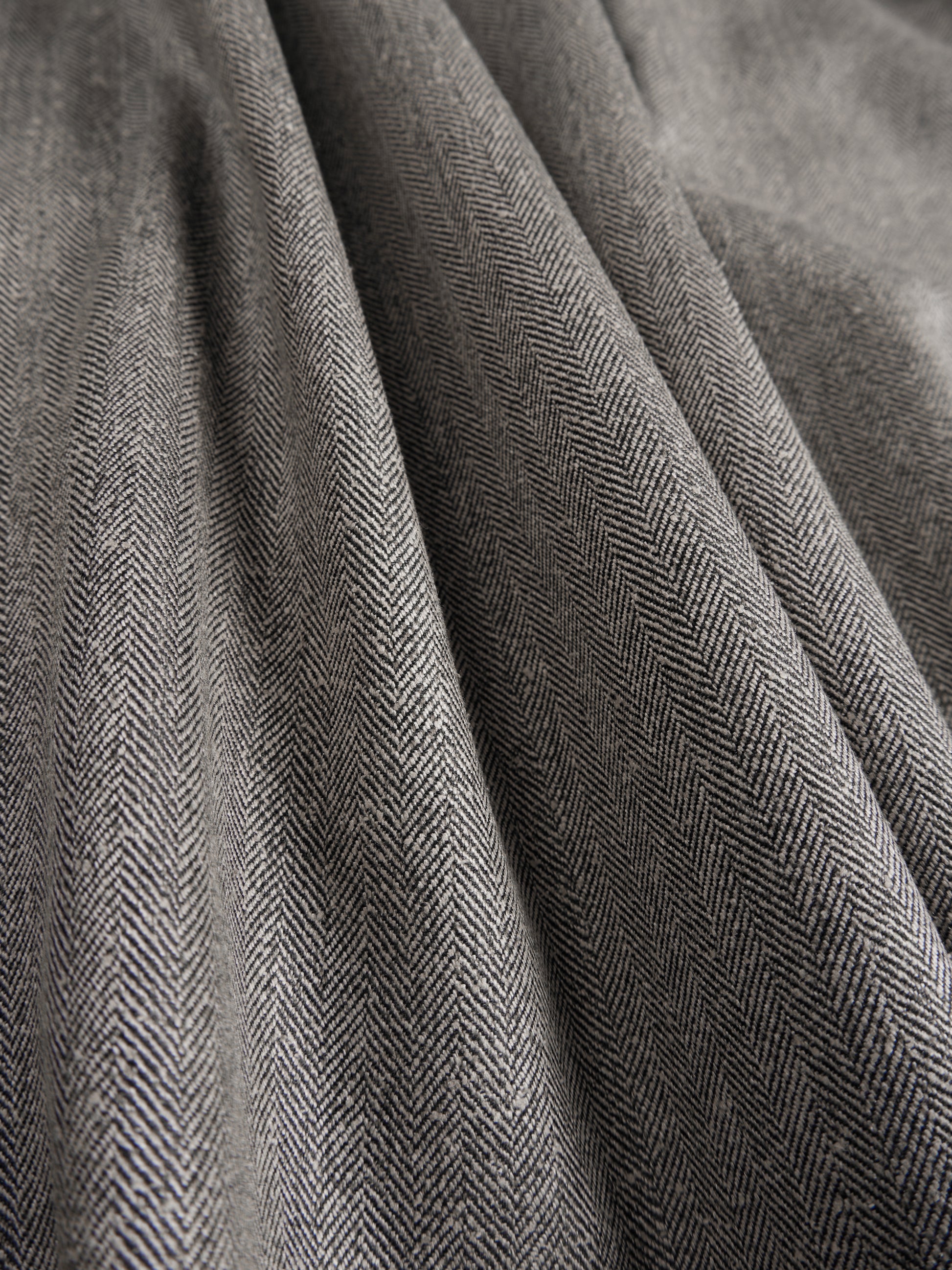 シルク紬糸と高繊度ウール梳毛糸を撚り合わせて撚り杢にしたオリジナルの糸を、ヘリンボン柄に織り上げています。