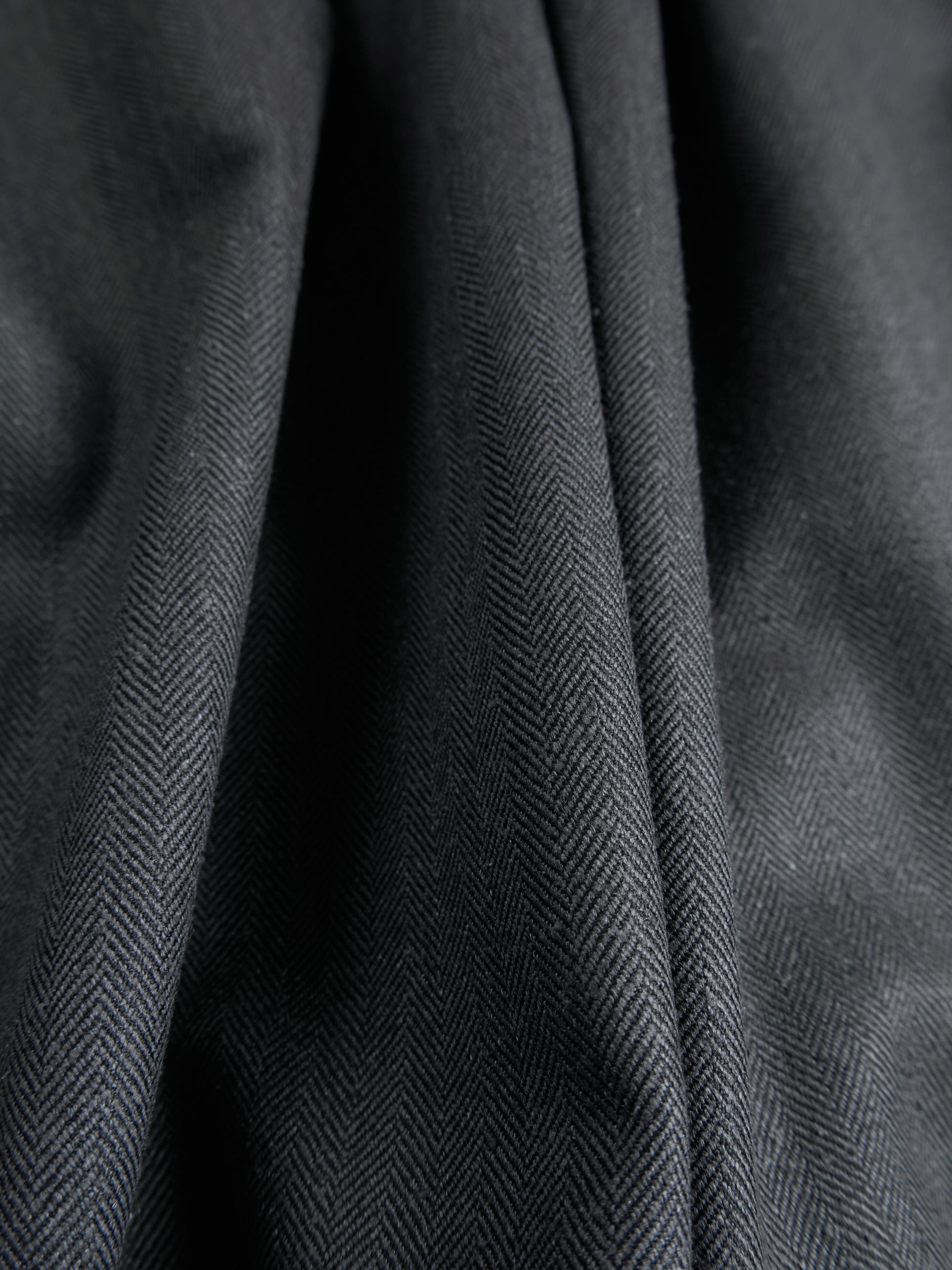 シルク紬糸と高繊度ウール梳毛糸を撚り合わせて撚り杢にしたオリジナルの糸を、ヘリンボン柄に織り上げています。