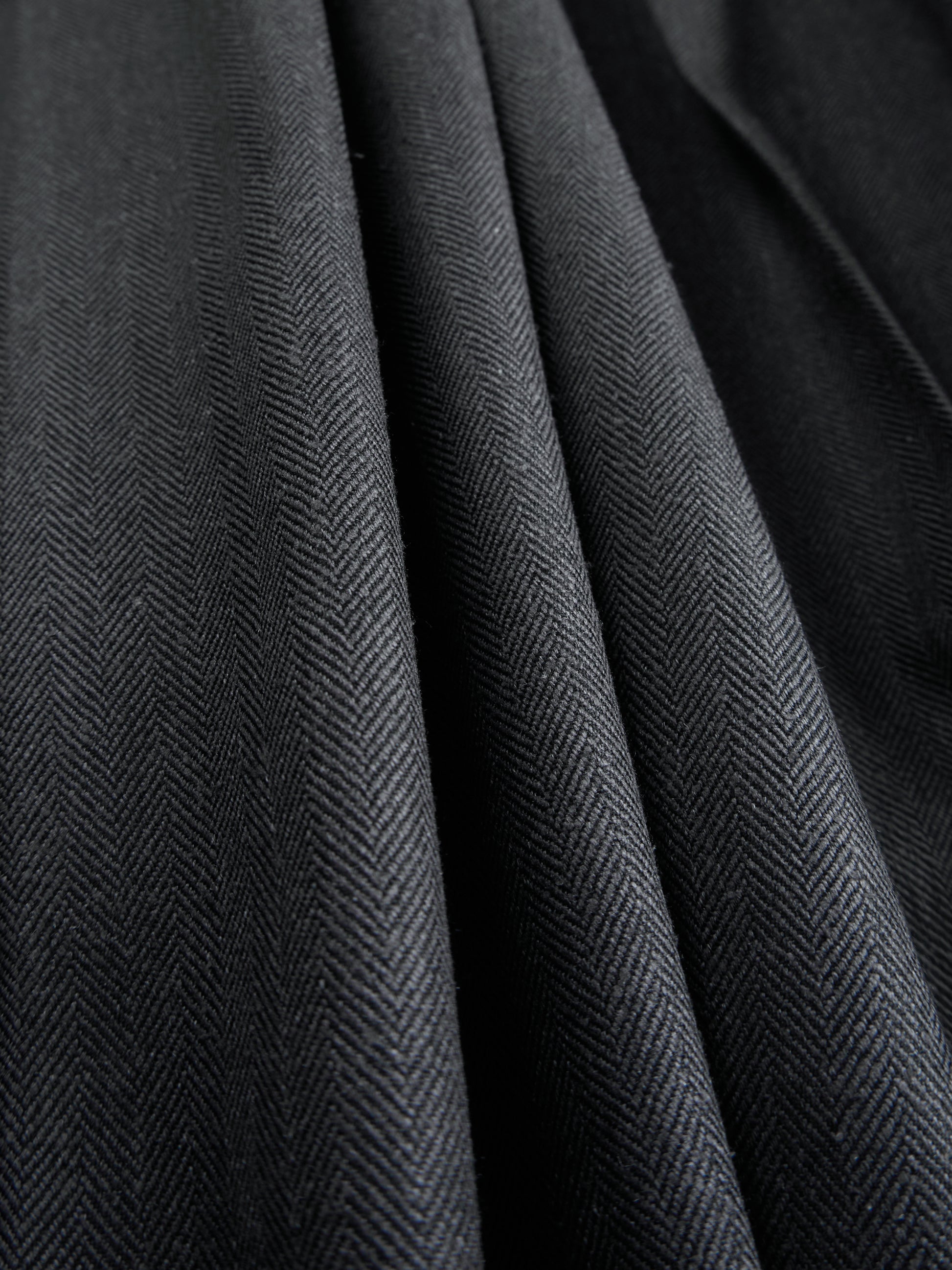 シルク紬糸と高繊度ウール梳毛糸を撚り合わせて撚り杢にしたオリジナルの糸を、ヘリンボン柄に織り上げています。