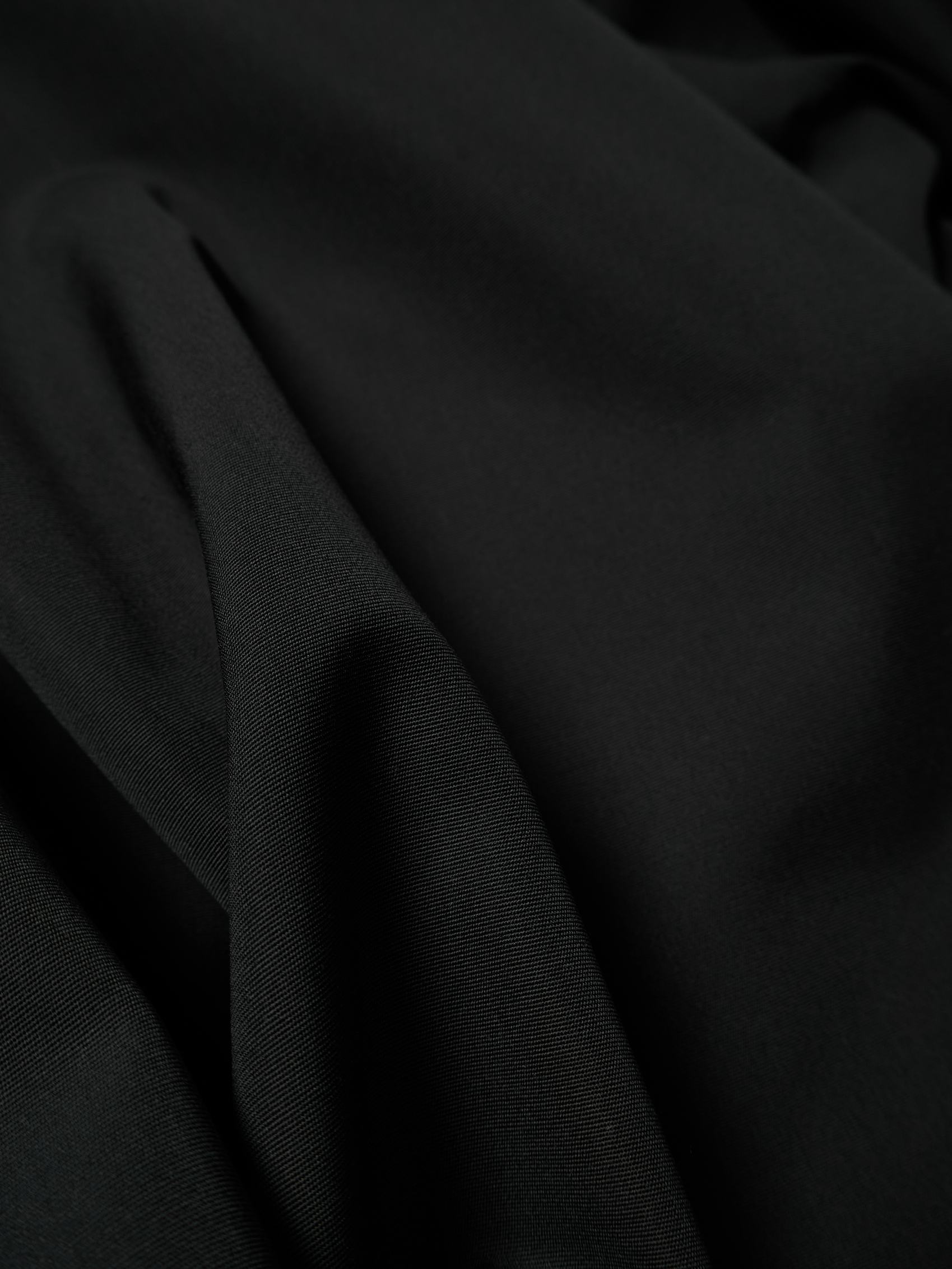 高繊度のSuper120’ s ウール原料を限界まで超高密度に織り上げることで、しっかりとしたハリ感の中にも、上品な鈍い光沢感と独特の滑らかな風合いを引き出しています。
