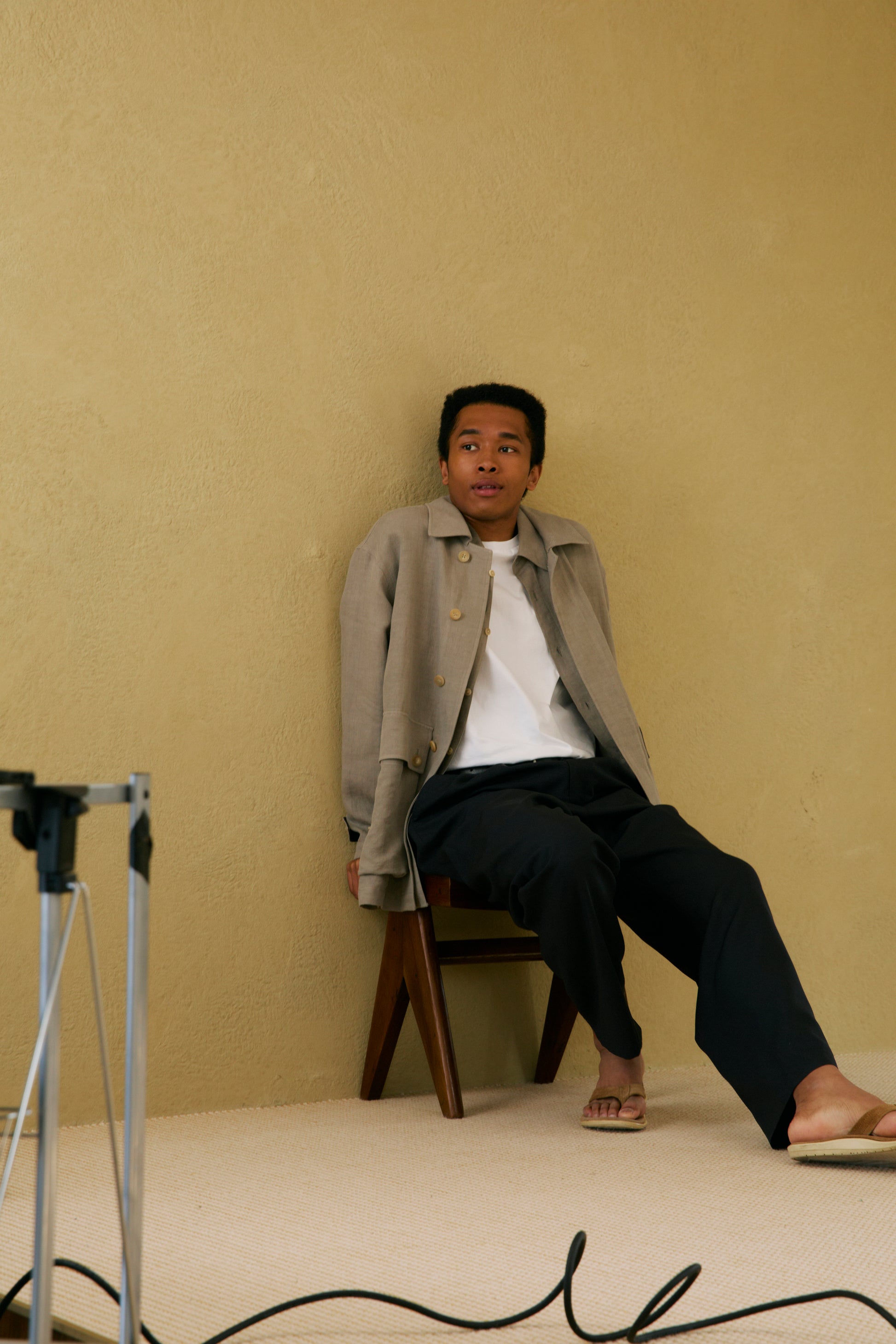 フランス産太番手リネンを使用した高密度ツイル素材のブルゾン。