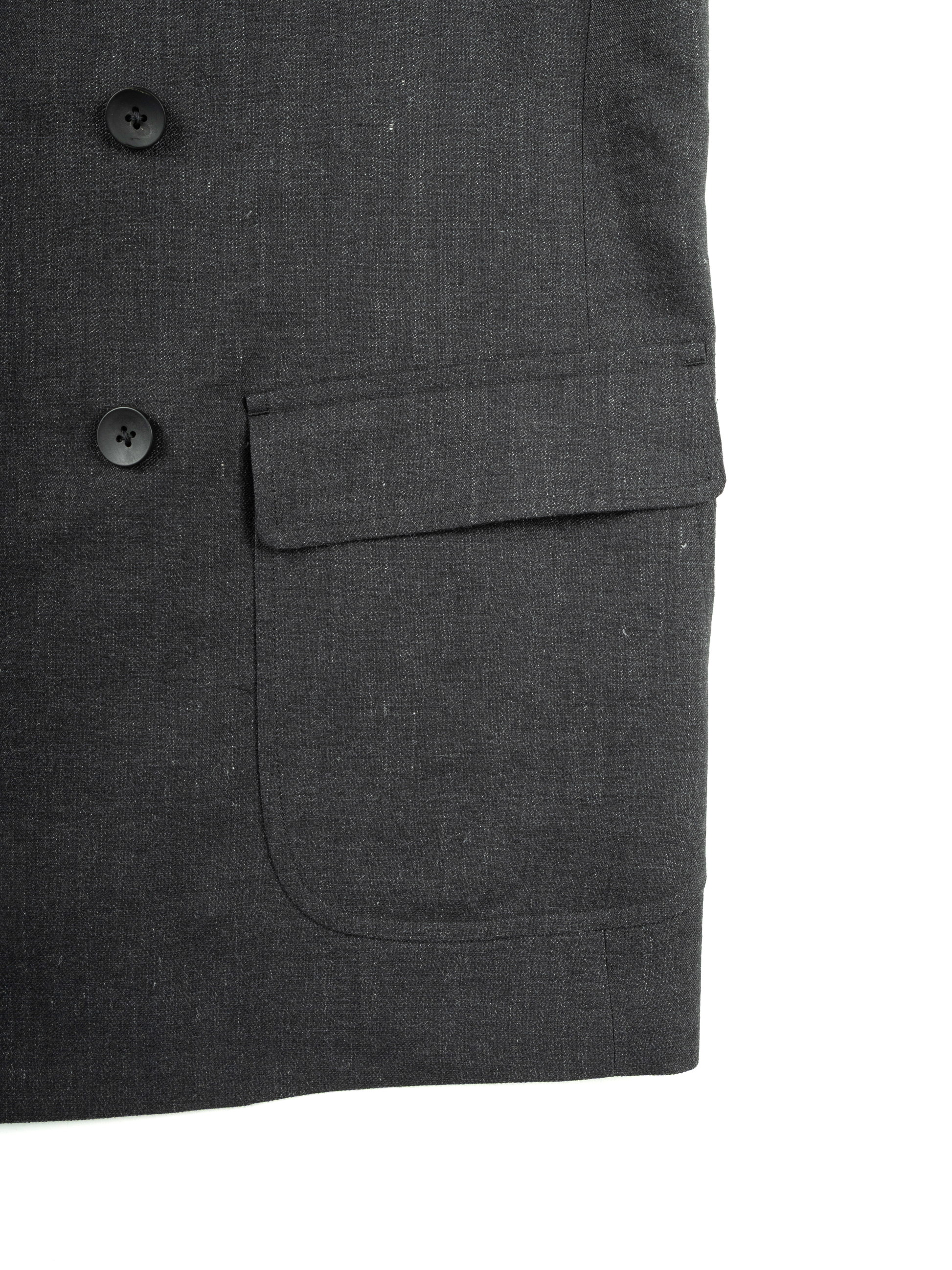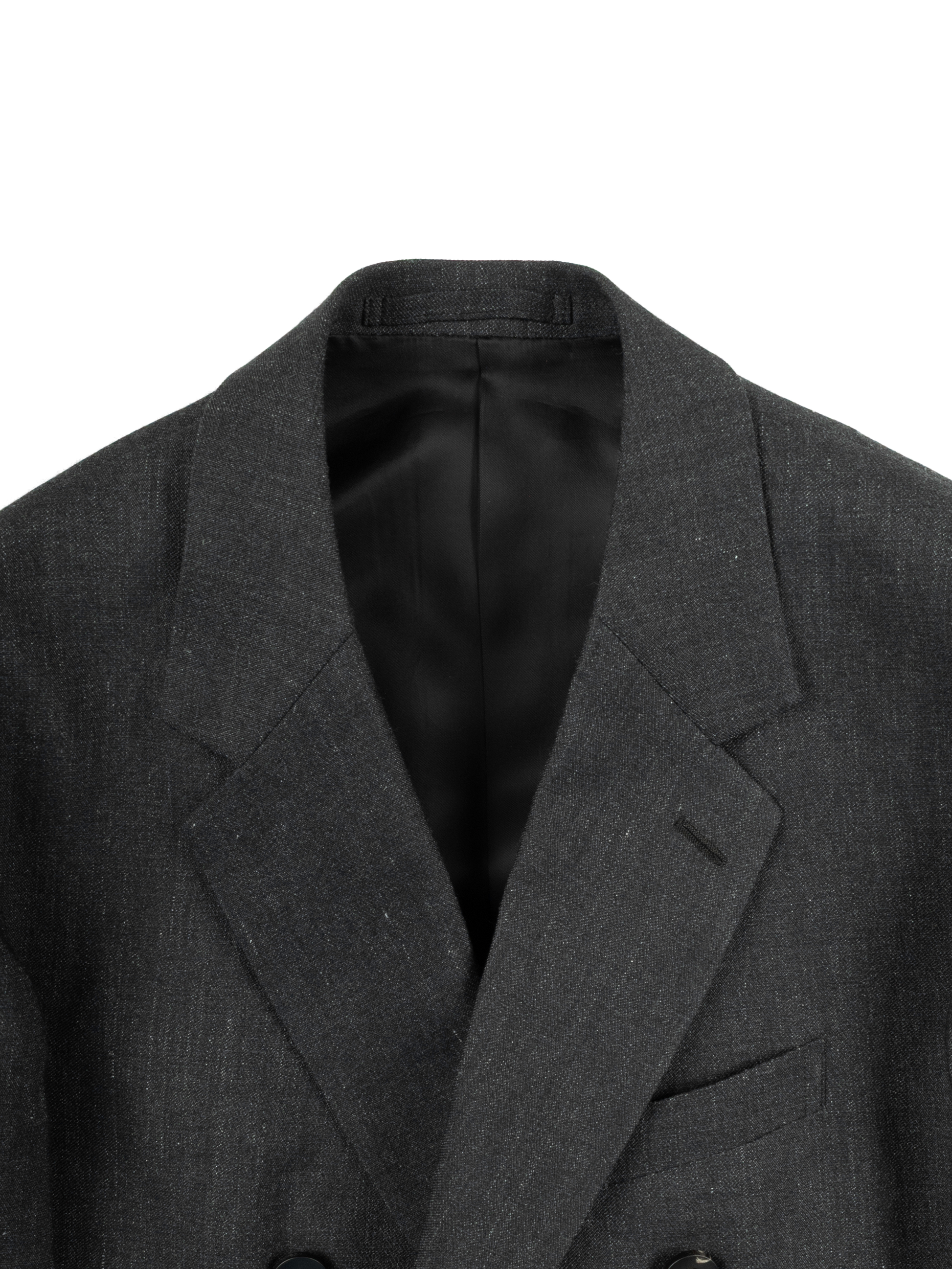 LINEN/PAPER/WOOL WASHED TWILL DOUBLE BREASTED JACKET|TOP BLACK