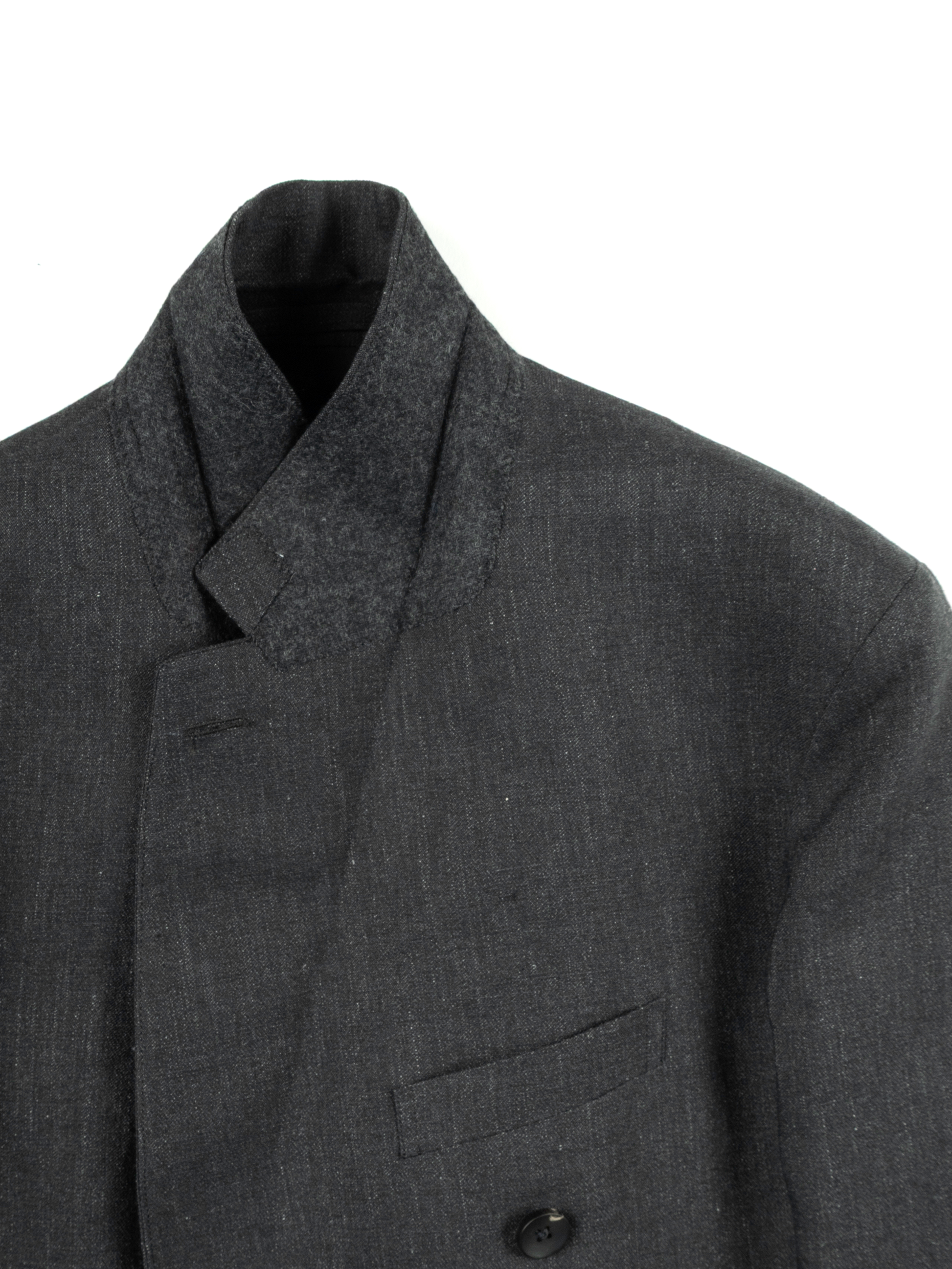 ウール/和紙/リネンのツイル素材を使用したダブルブレステッドテーラードジャケット。