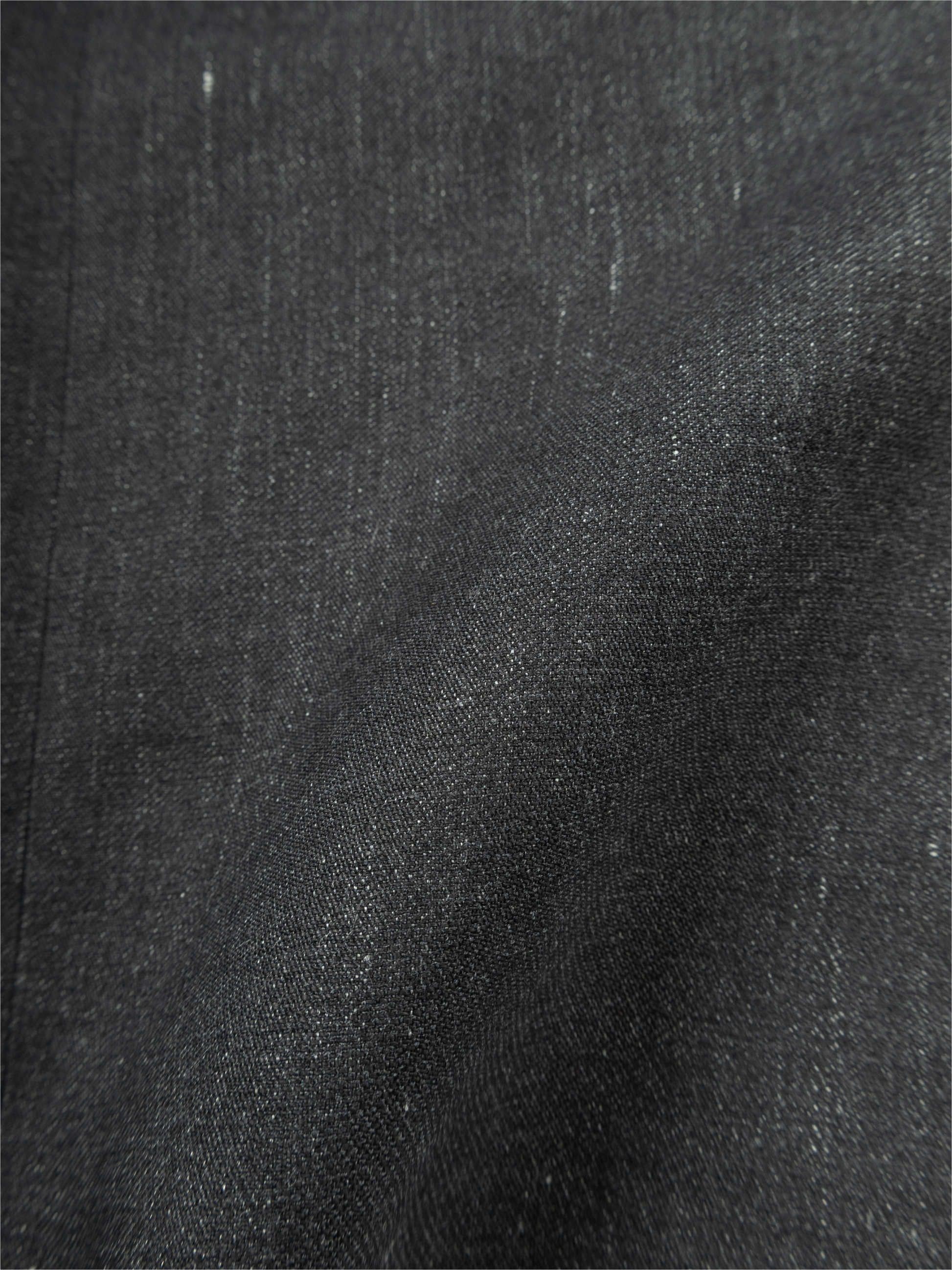 経糸に弱撚の笹和紙とSuper130’sウール梳毛糸、緯糸にリネンを使用し密度を調整しながら丁寧に製織したツイル素材で、仕上げにタンブラー加工を施すことで、ヴィンテージ風のこなれた表情と繊細なタッチを併せ持った雰囲気のある素材に仕上げました。