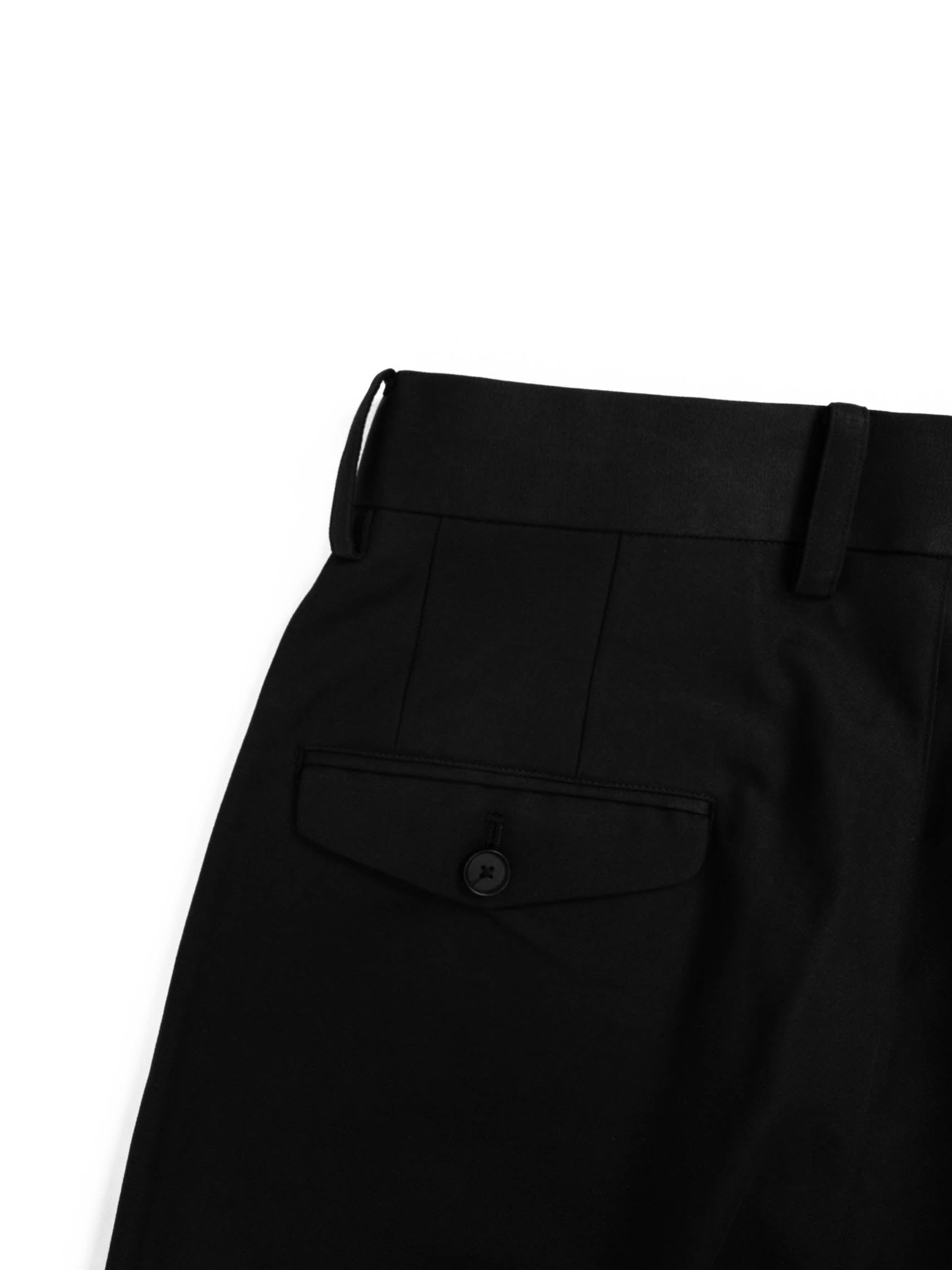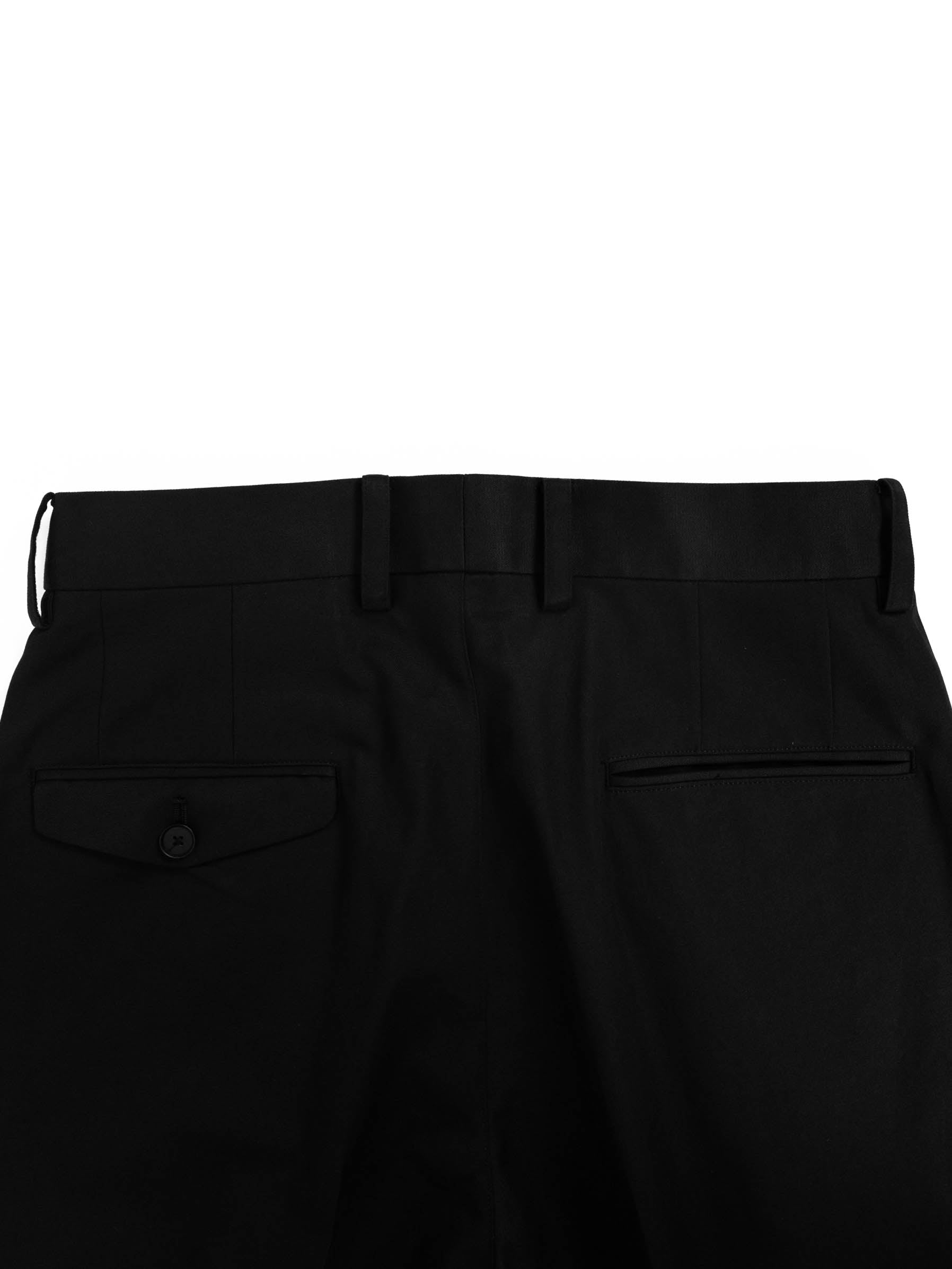 棉质休闲裤,采用华达呢材料制成,采用 Finx 棉三股线作为经线,棉精梳纱作为纬线,以超高密度编织而成。