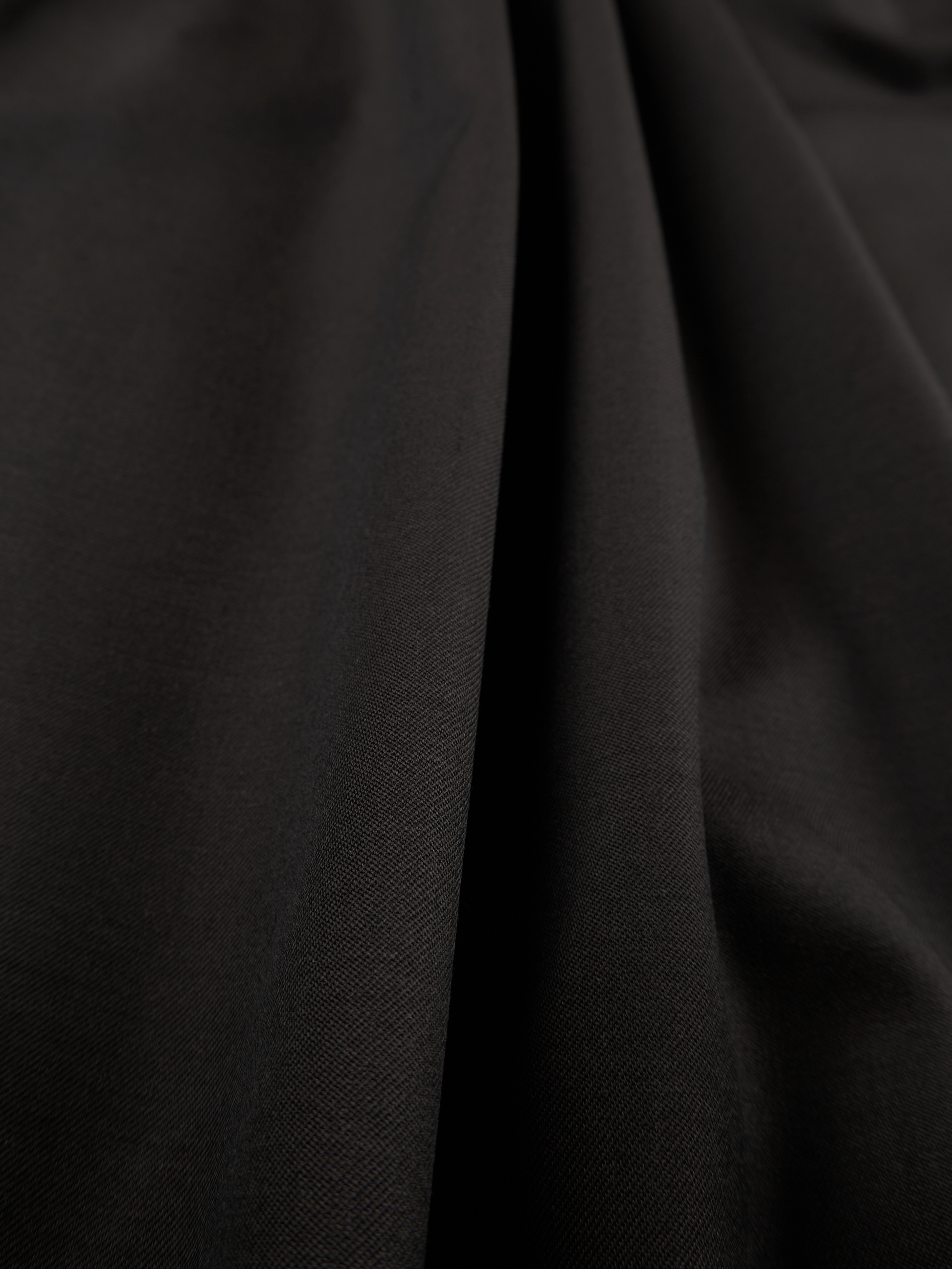 采用S130等级的澳大利亚美利奴羊毛原料,采用经纬线不同颜色的纱线织成斜纹组织,打造出具有微妙色彩层次感的羊毛斜纹布。
