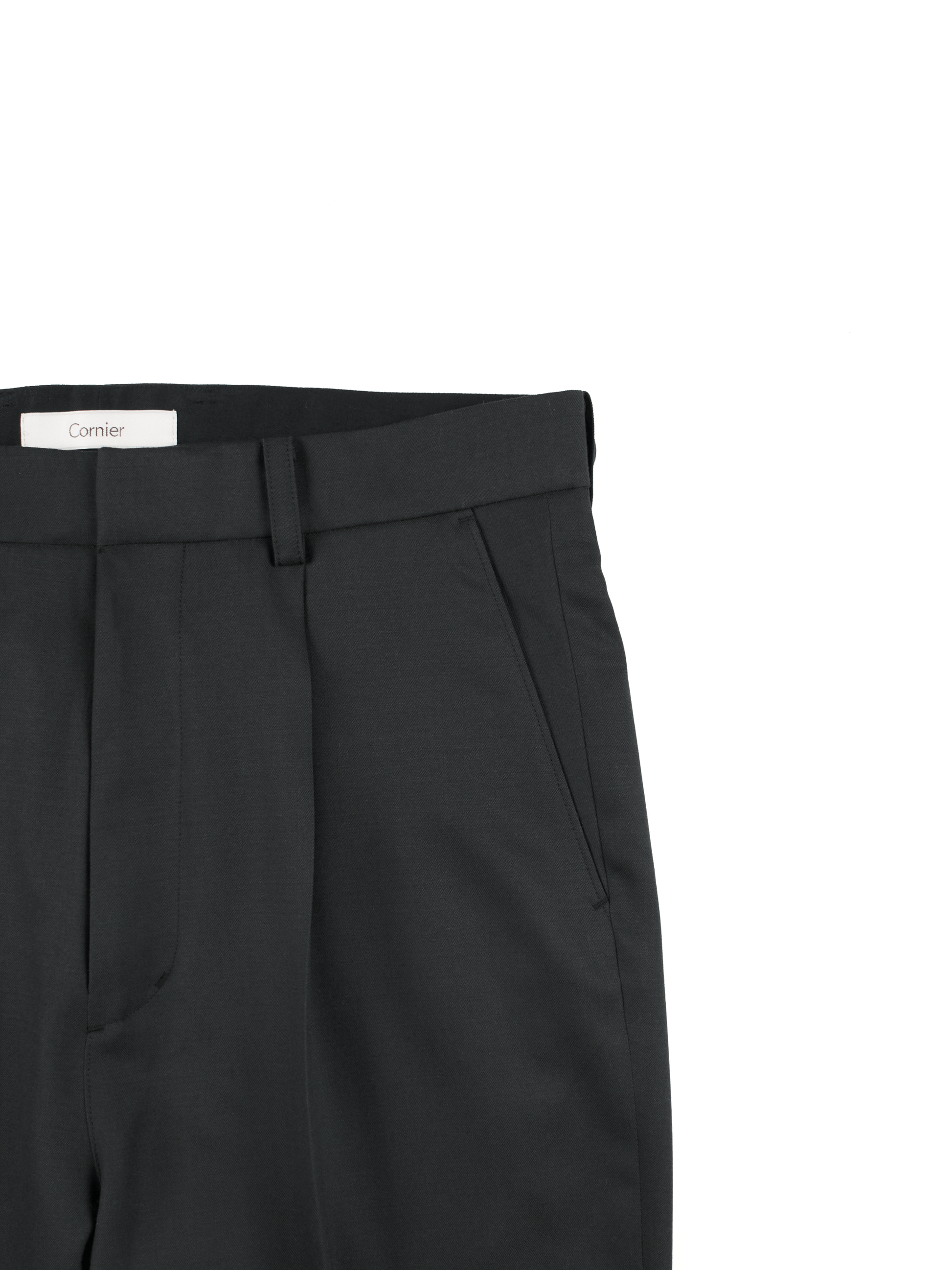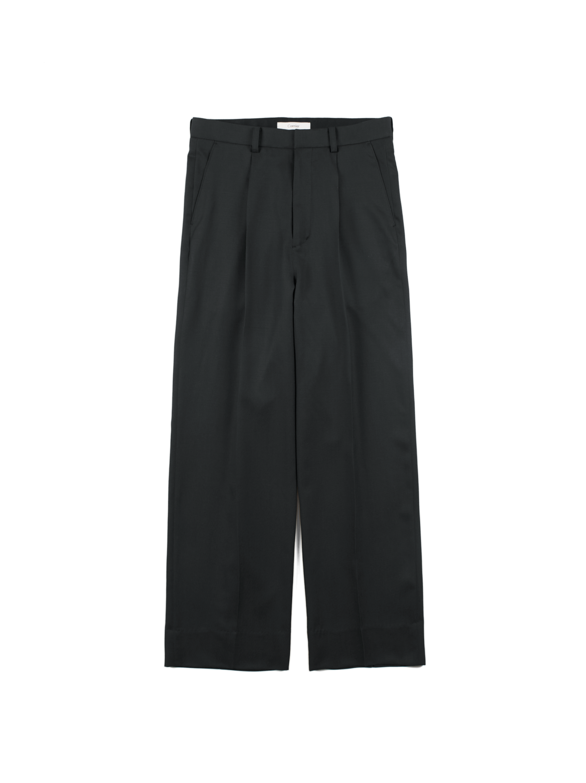 Super130's WOOL CHAMBRAY GABARDINE SLACKS|BLUE CHARCOAL