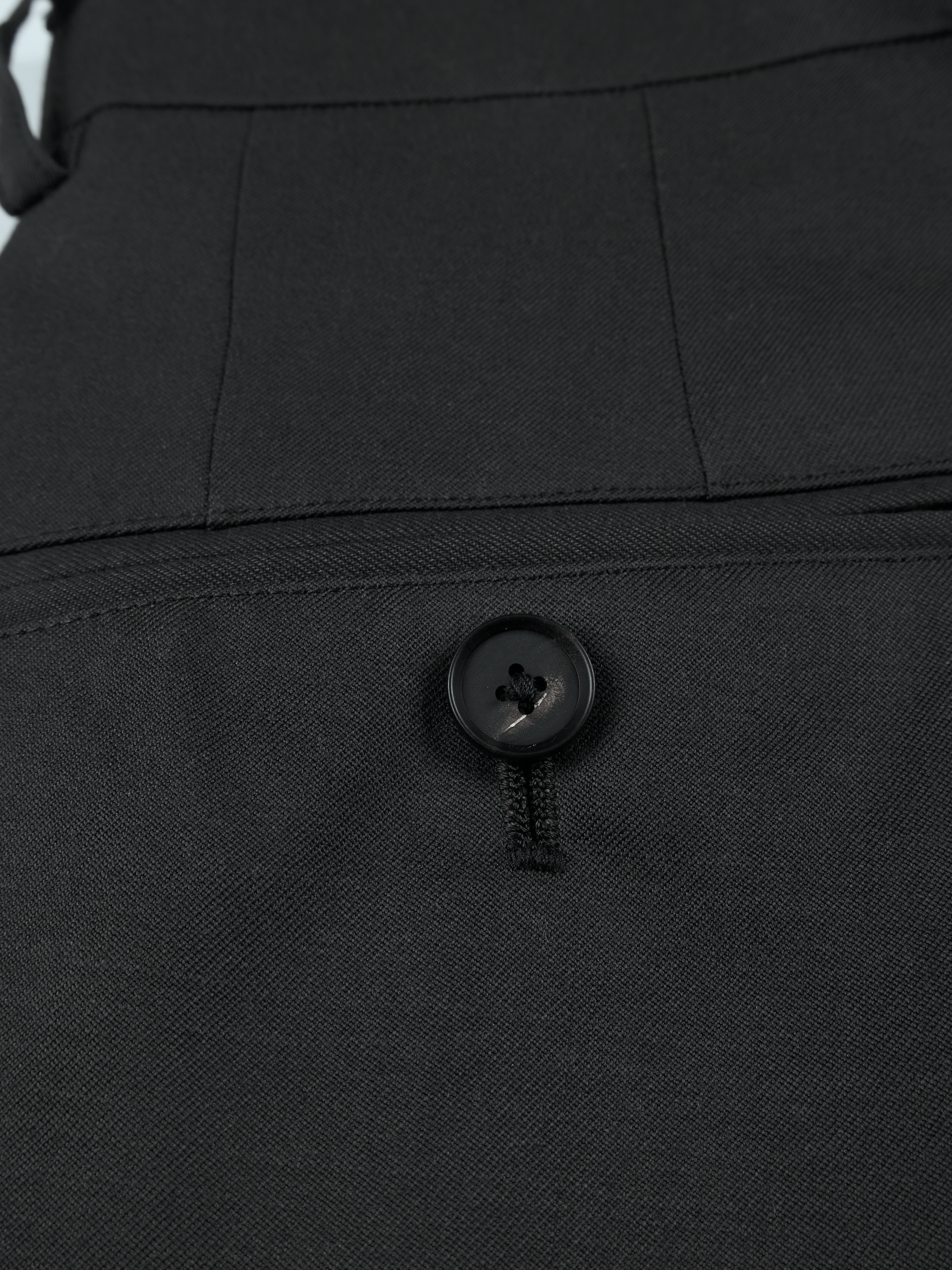 使用高纤维度羊毛原料的羊毛斜纹布料长裤。