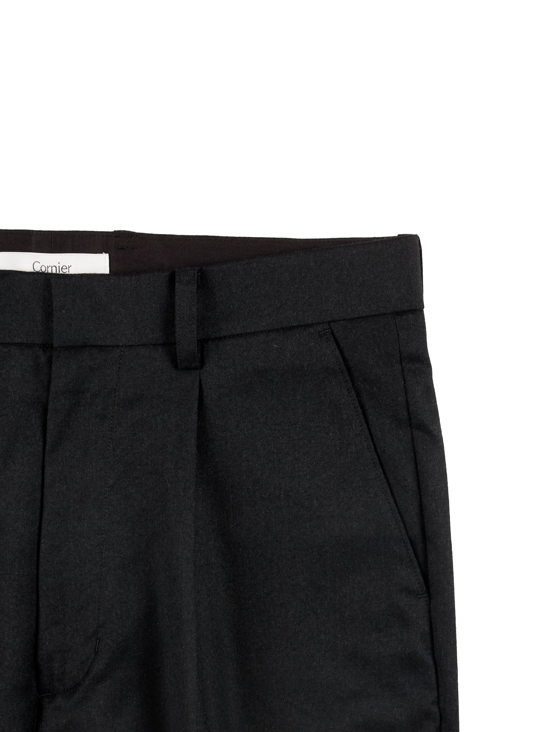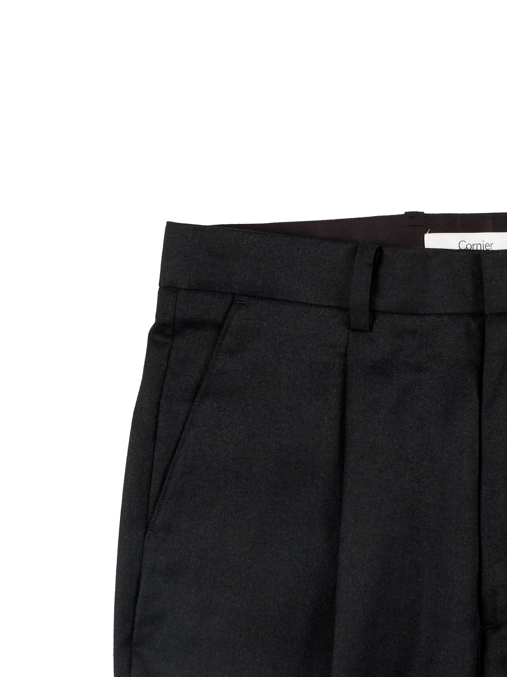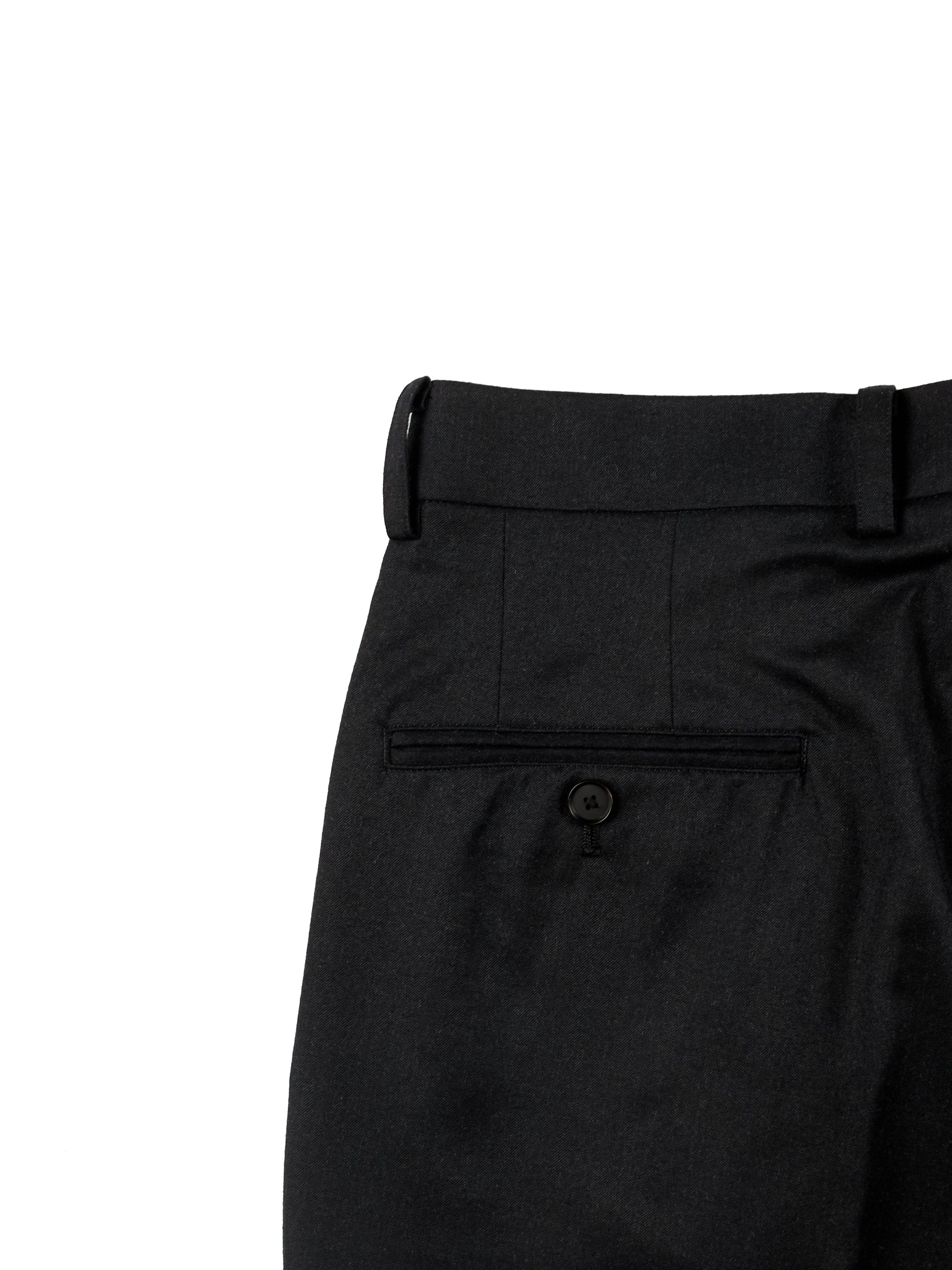 Super130's WORSTED WOOL LIGHT MILLED SLACKS|TOP BLACK