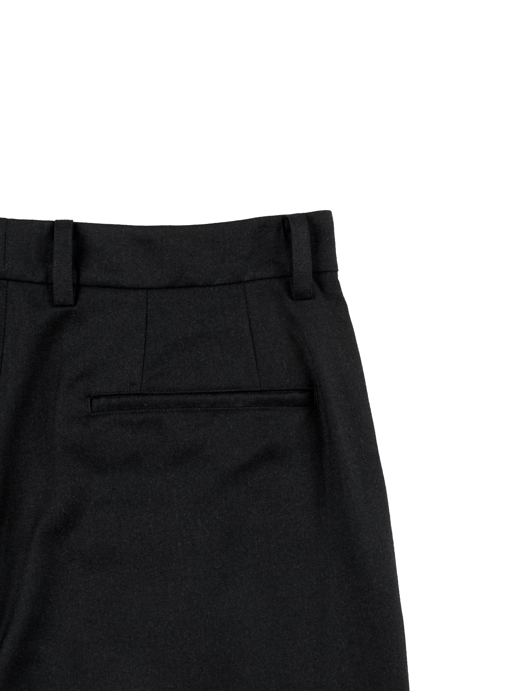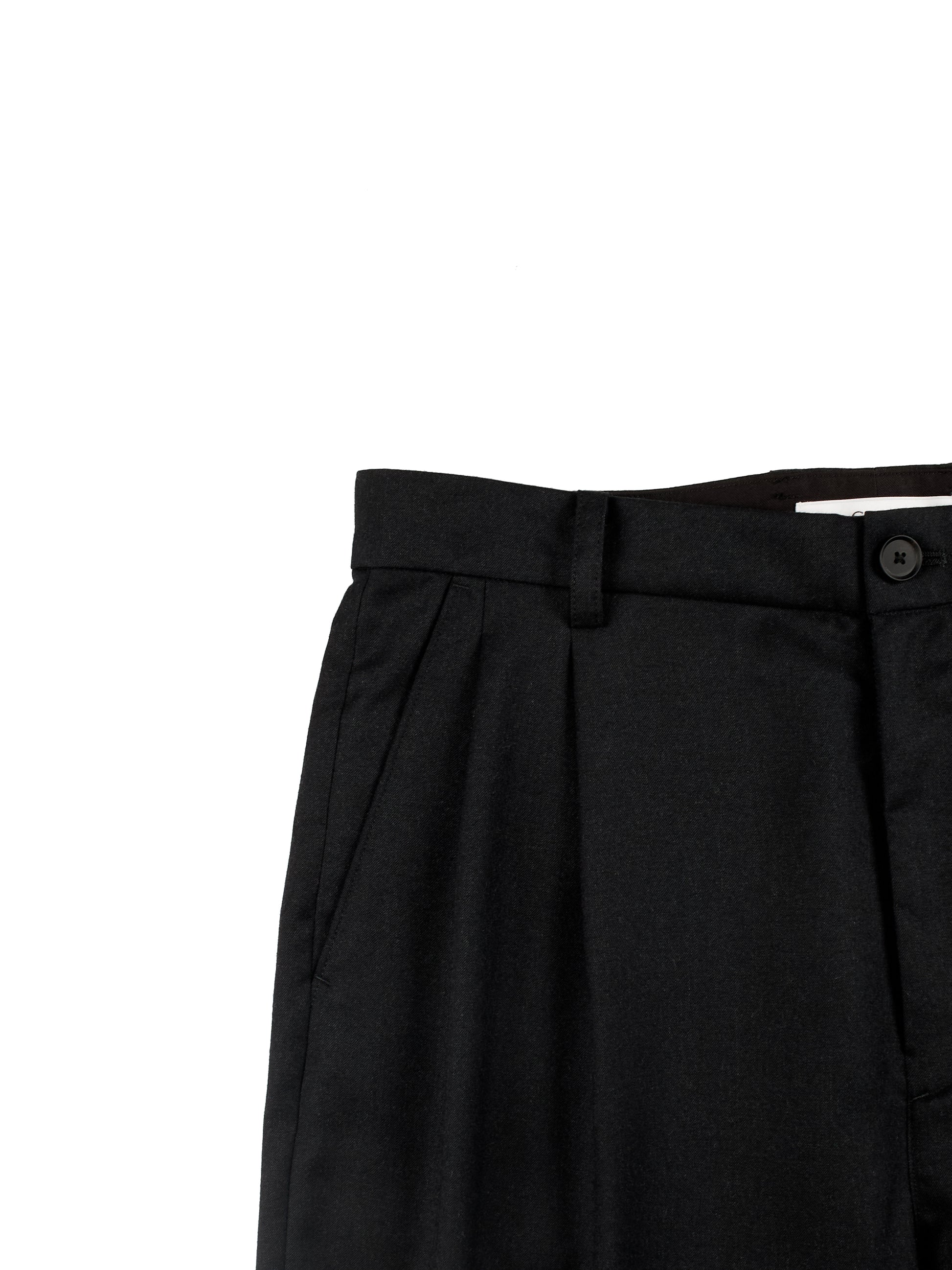 Super130's WORSTED WOOL LIGHT MILLED WIDE PANTS|TOP BLACK