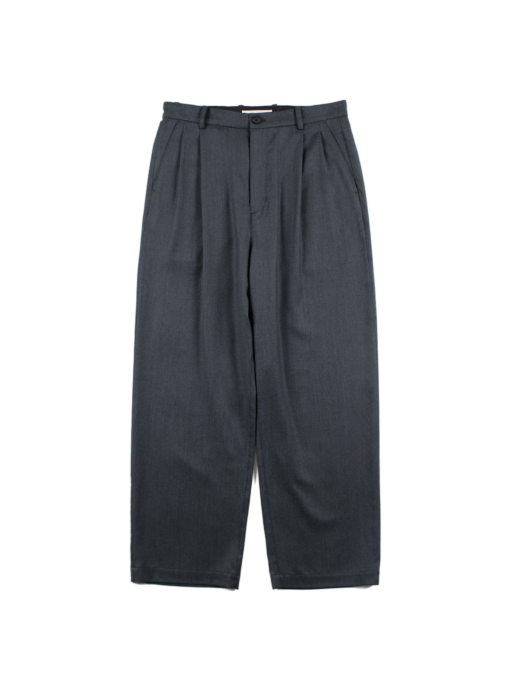 Super130's WORSTED WOOL LIGHT MILLED WIDE PANTS|TOP GRAY