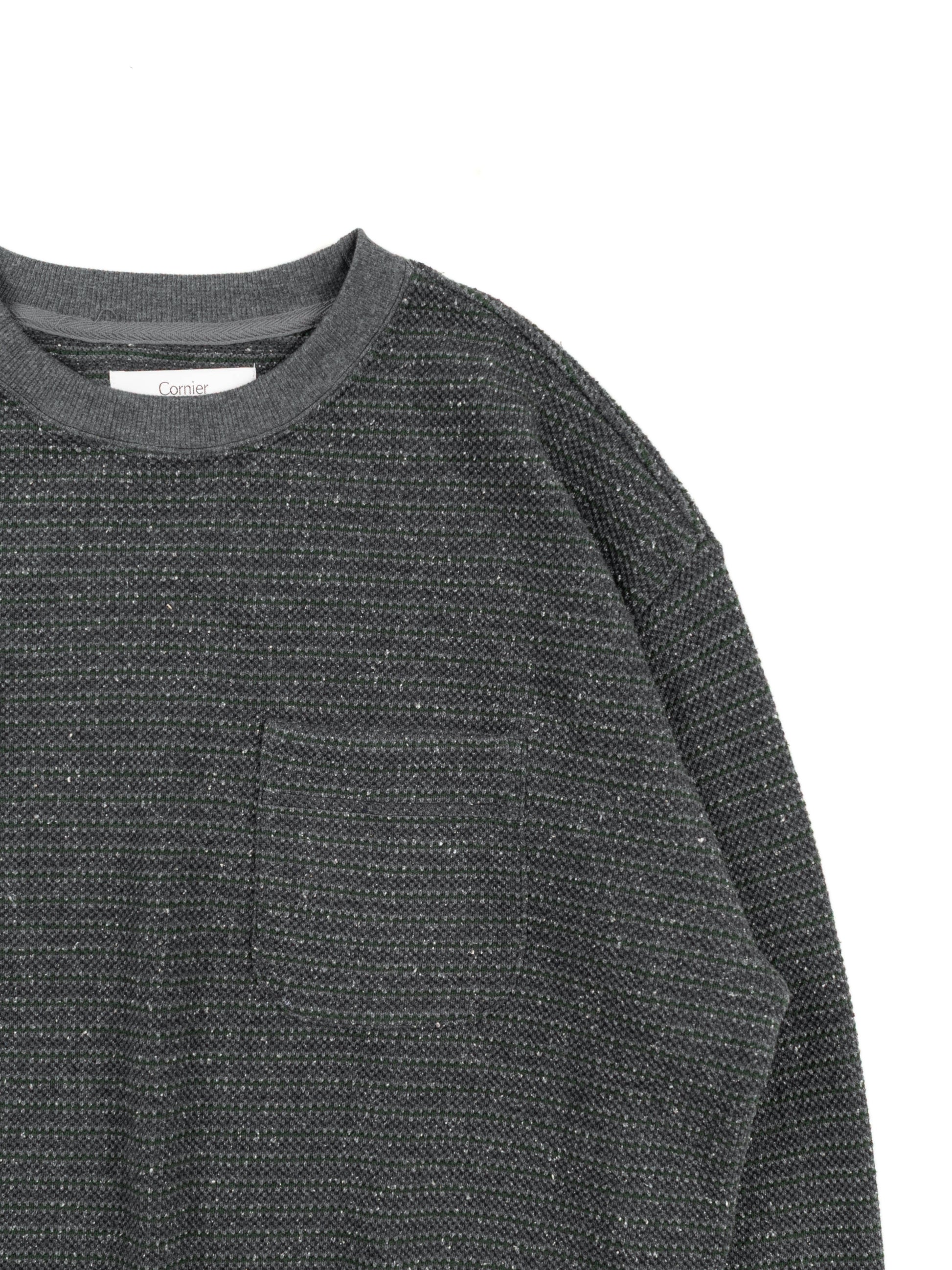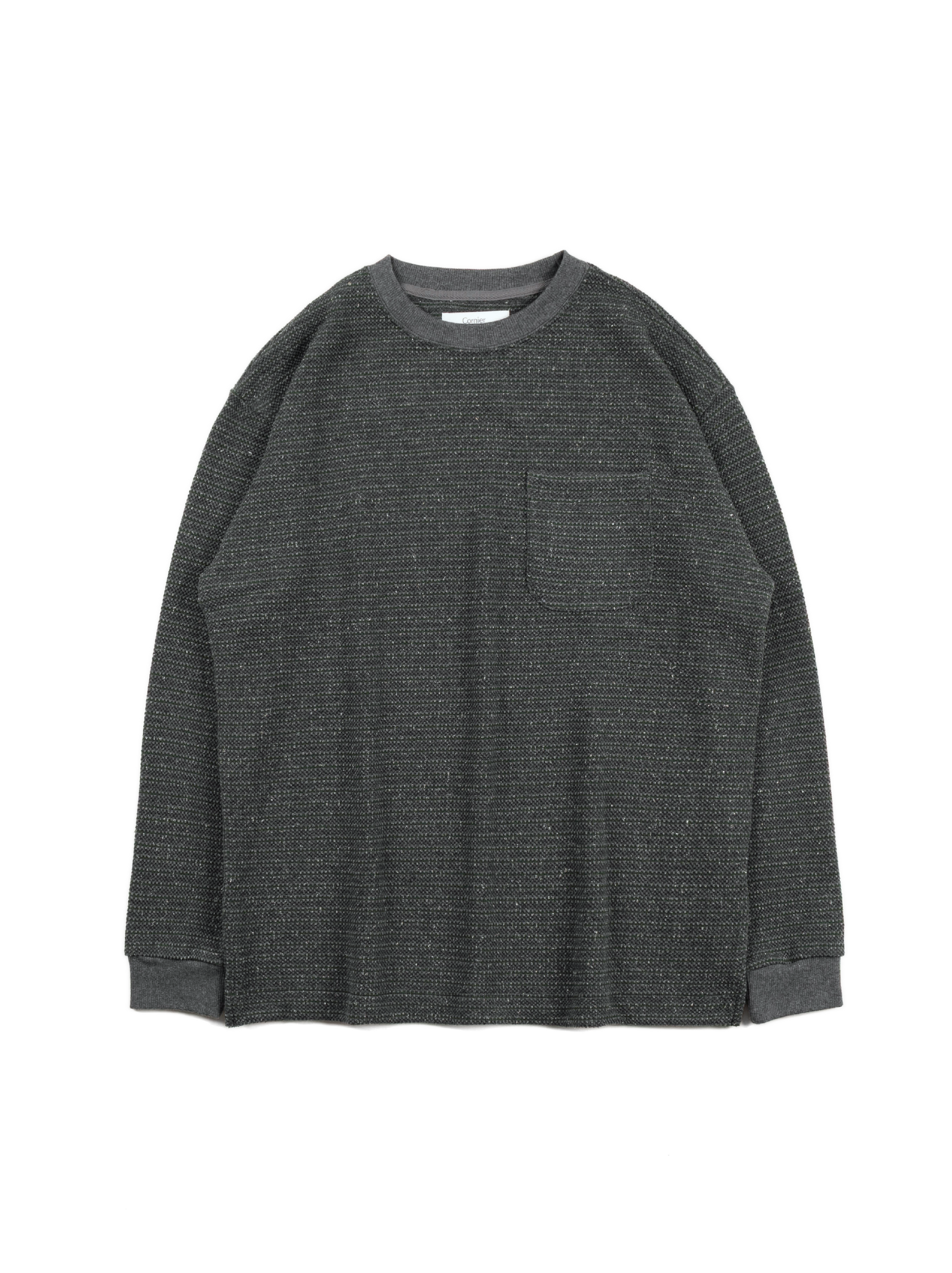 SILK NEP HEAVY MOSS STITCH BORDER LONG SLEEVE T-SHIRTS|GREEN